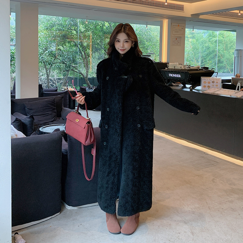 韓国版カシミヤの毛皮のコートの女性は膝を越えて長い毛のコートの羊の小毛の海寧の冬の新型をプラスします。