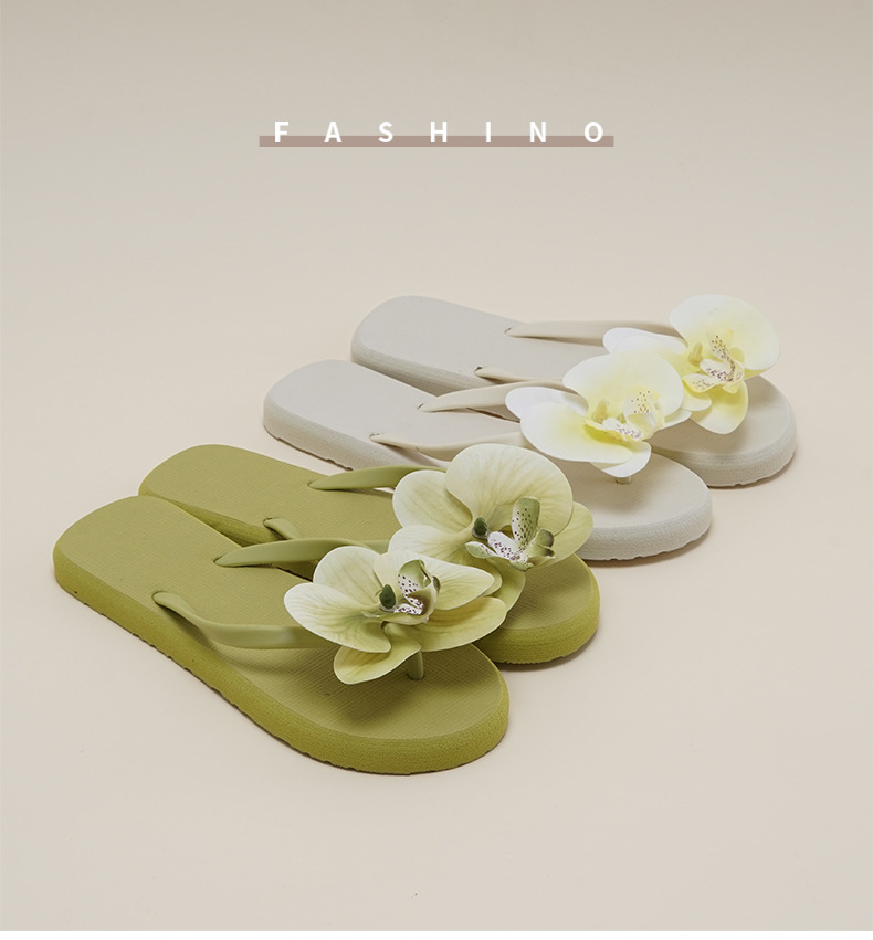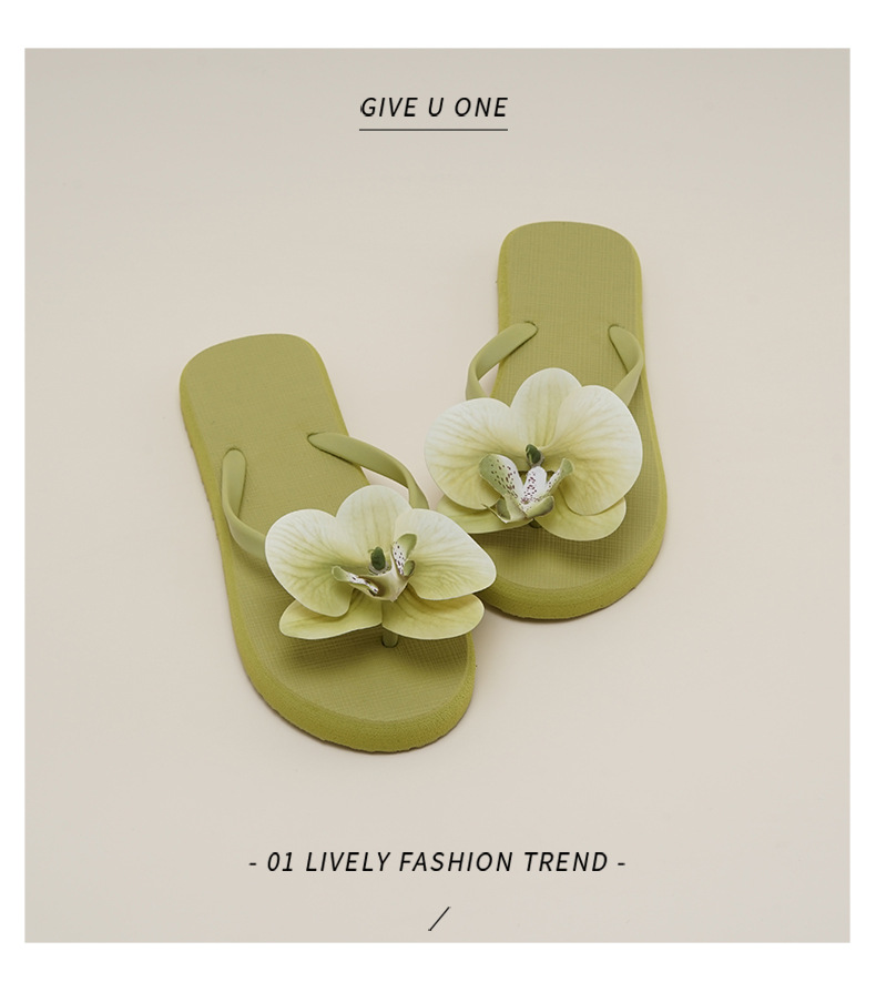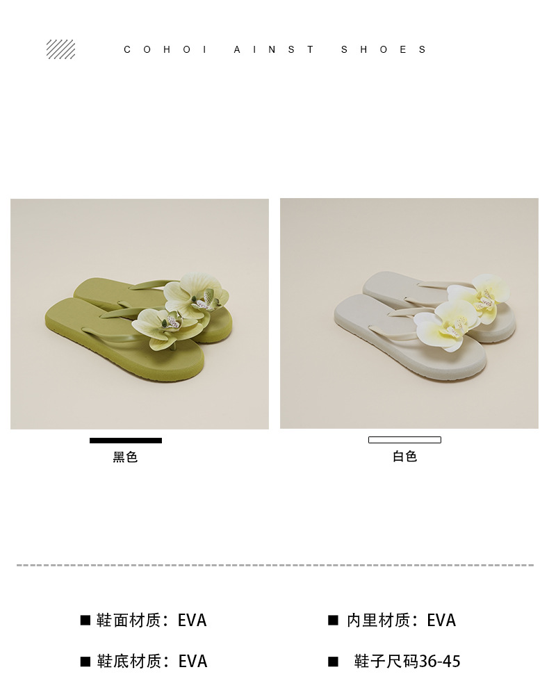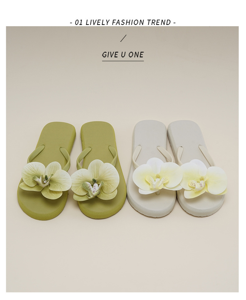 沙滩鞋韩风时尚人字拖外穿女饰品人字夹脚海边拖鞋森系兰花人字拖
