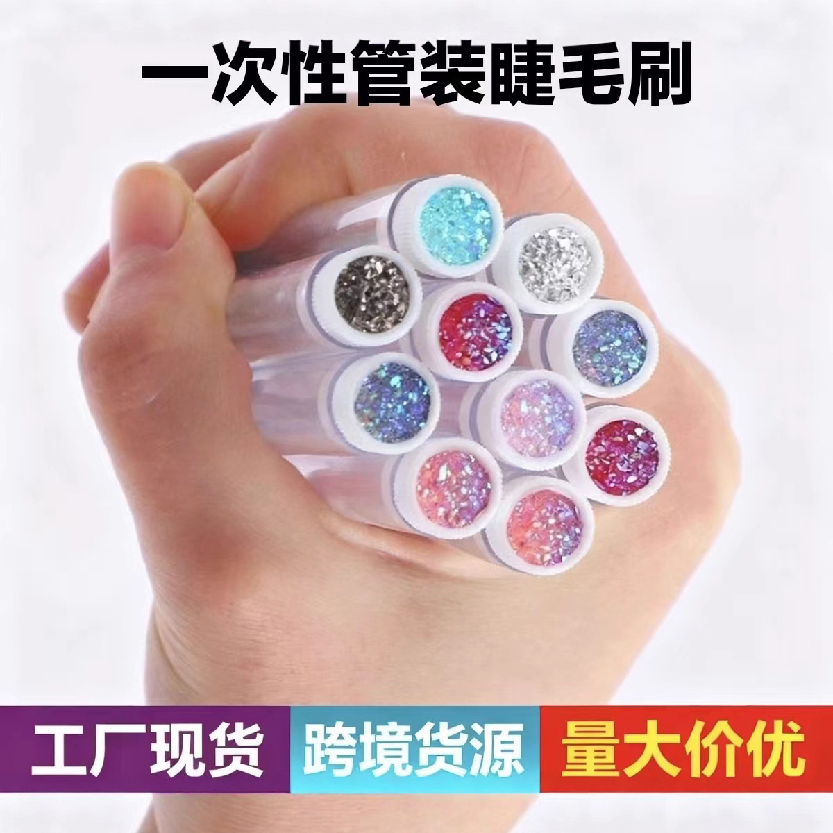 新登場の越境商品、ダイヤモンド付き試験管型まつげブラシ、個別チューブ入り、使い捨て、多色、多種類選択可能、キラキラ輝くダイヤモンド