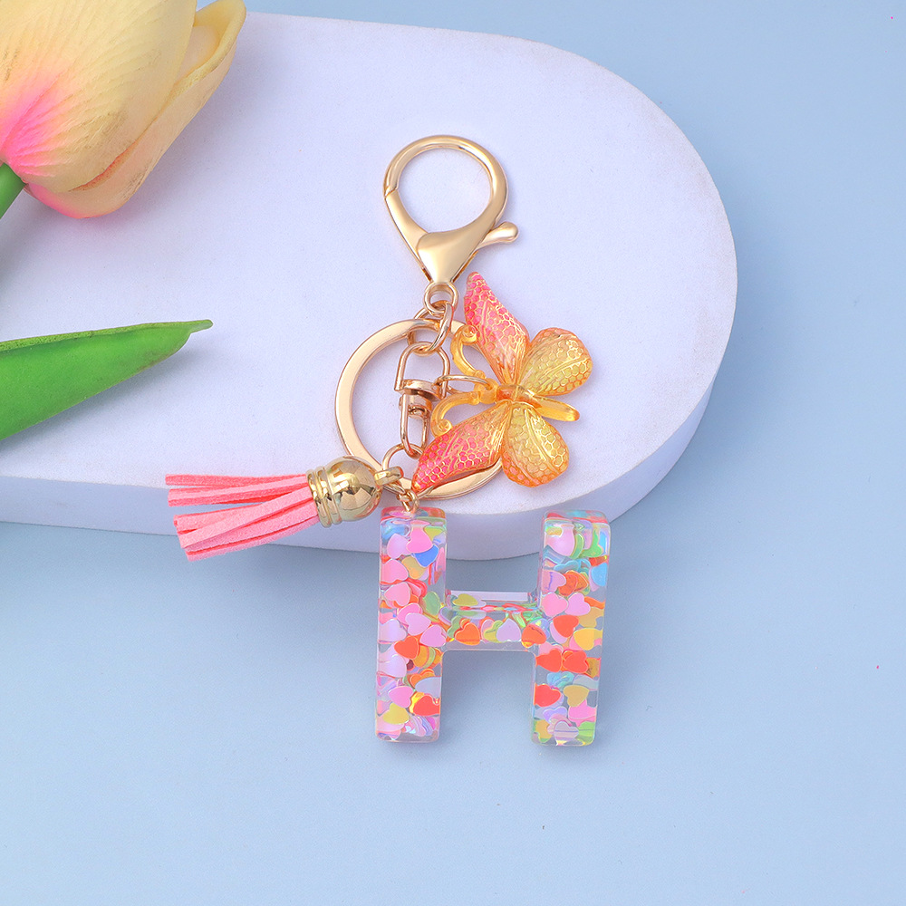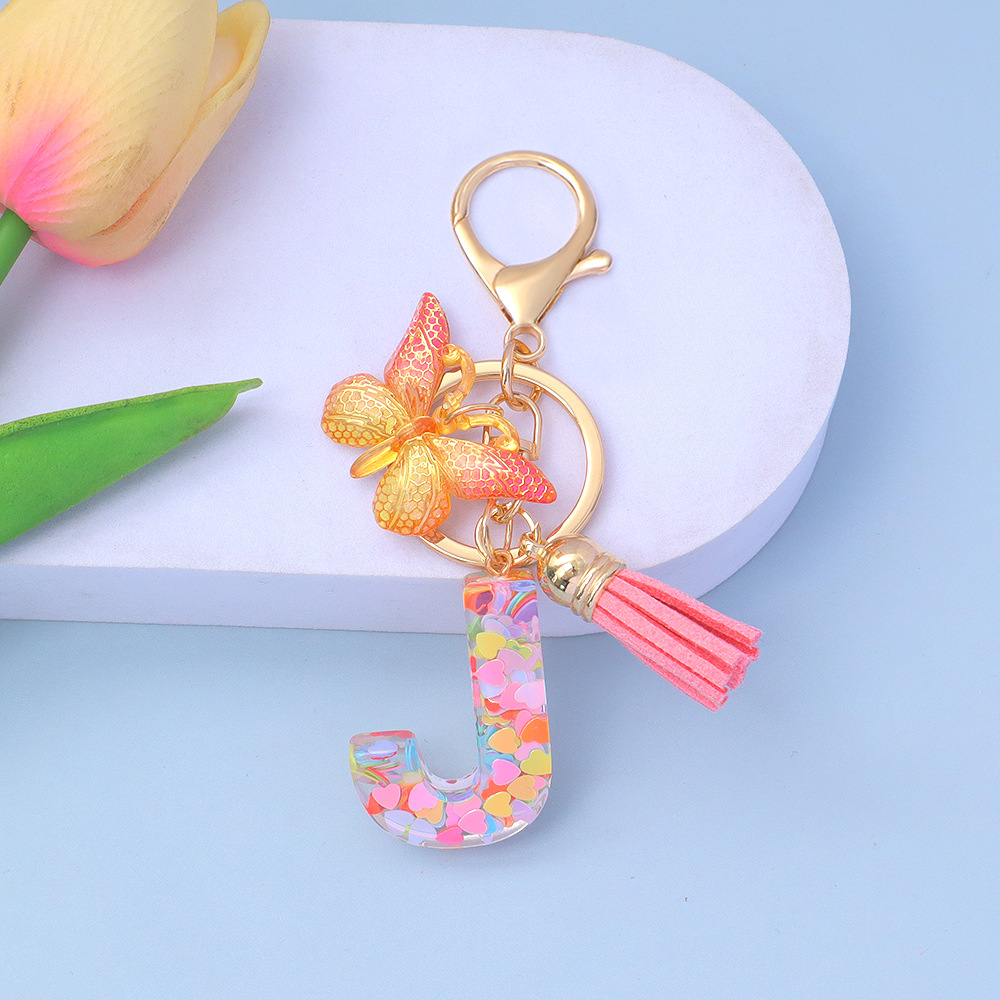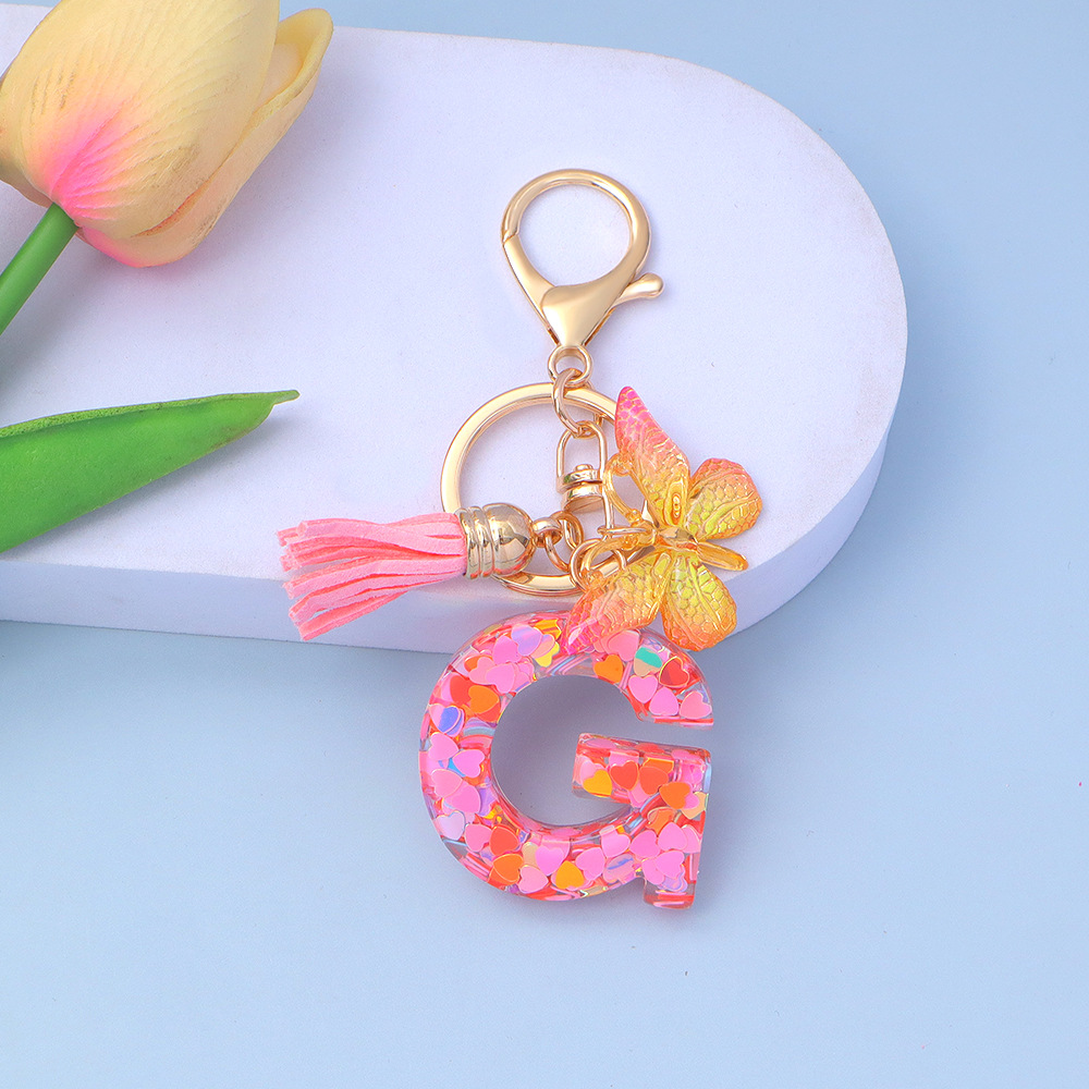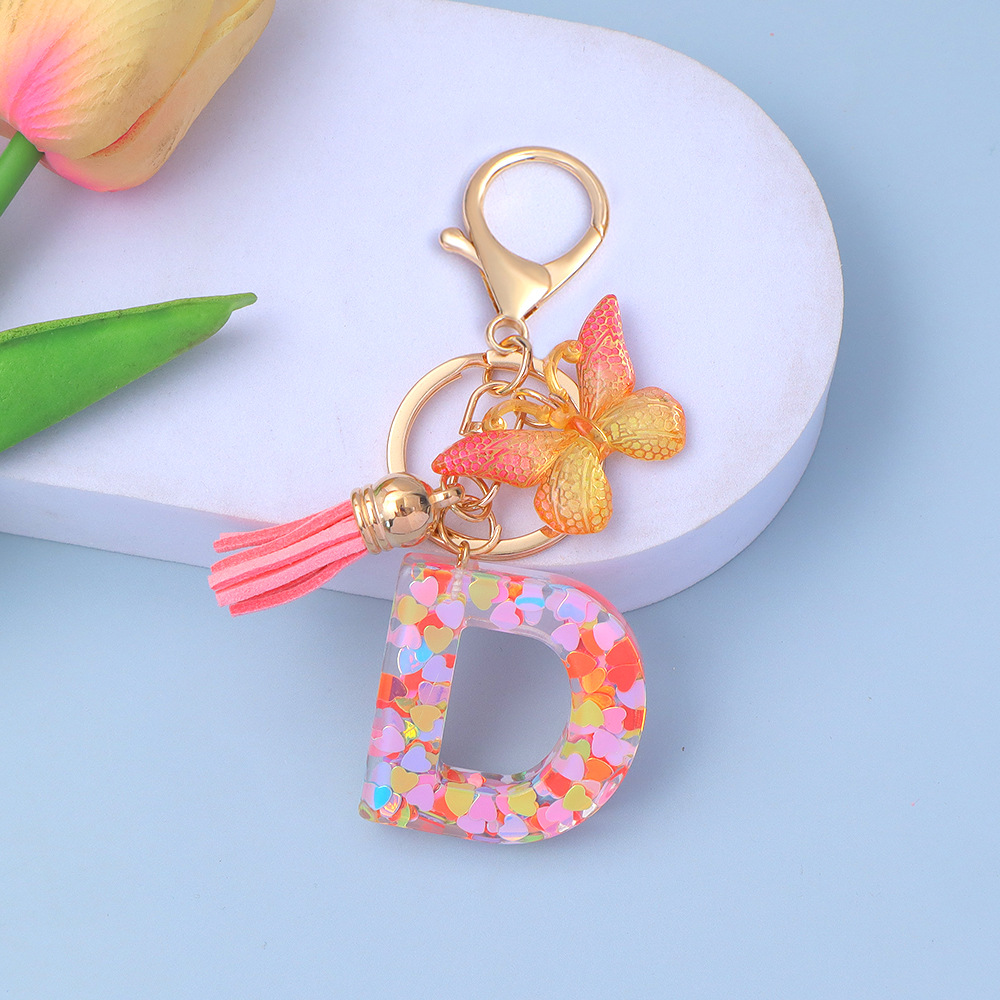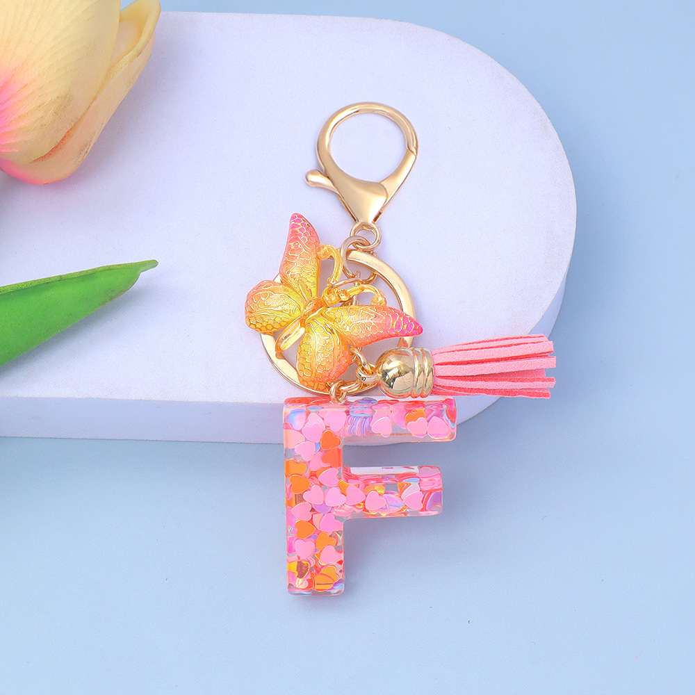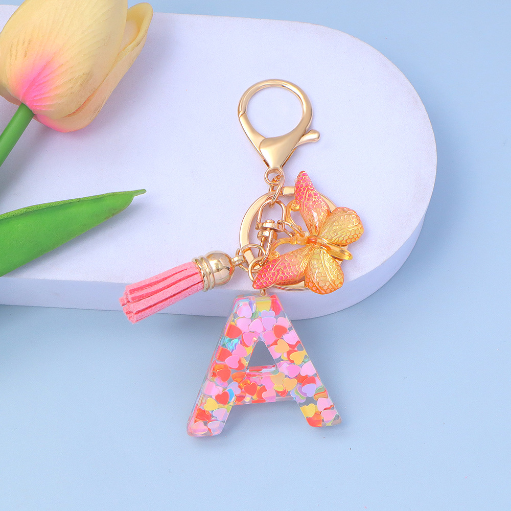 ピンクのスパンコールのアルファベットのキーは蝶のフリンジのペンダントを掛けます。