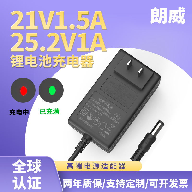 25.2v1aリチウム電池充電器照明器具家電認証充電器中規21V1.5A電源アダプタ