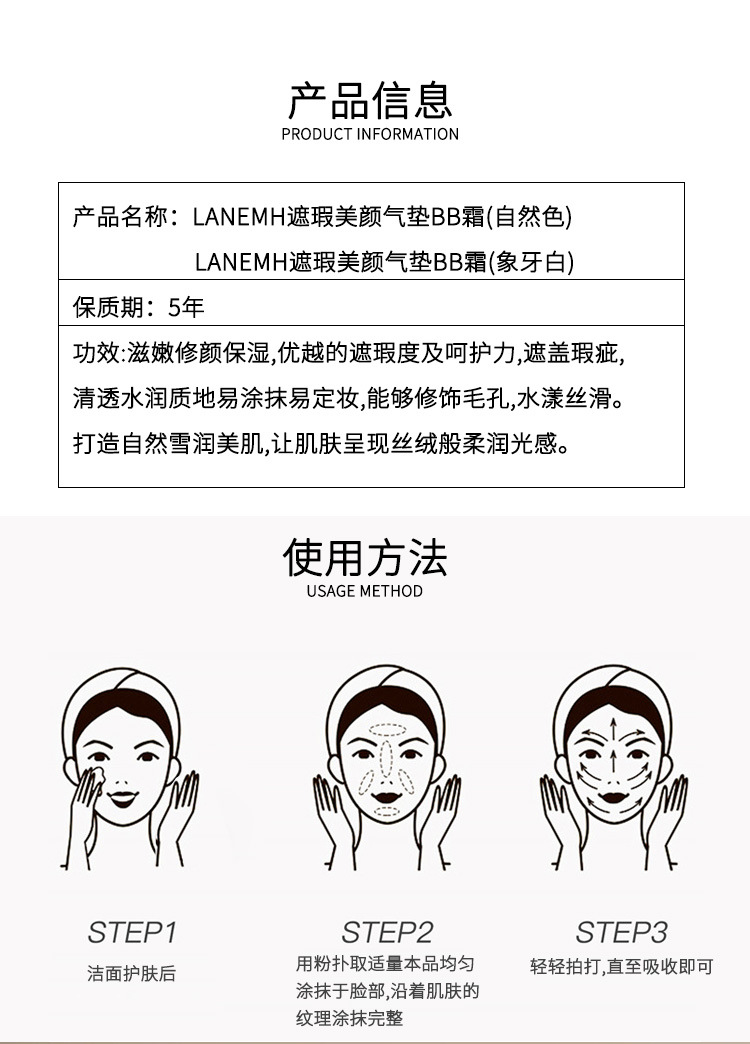 【产品名称】LANEMH遮瑕美颜气垫BB霜