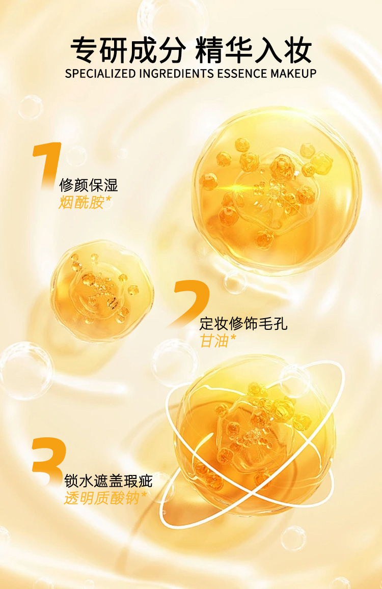 【功效】滋嫩修颜保湿,优越的遮瑕度及呵护力,遮盖瑕疵,清透水润质地易涂抹易定妆,能够修饰毛孔,水漾丝滑。打造自然雪润美肌,让肌肤呈现丝绒般柔润光感。
