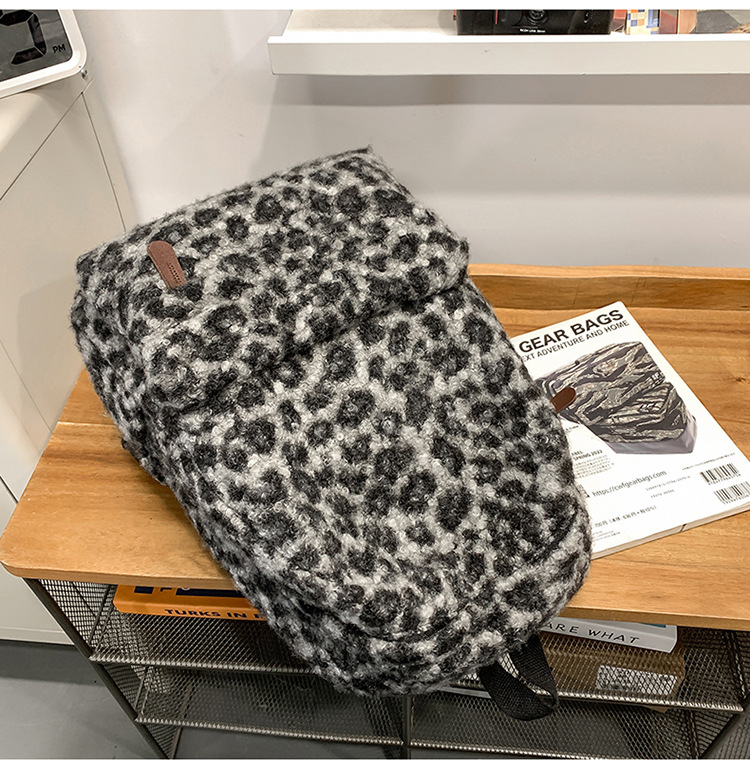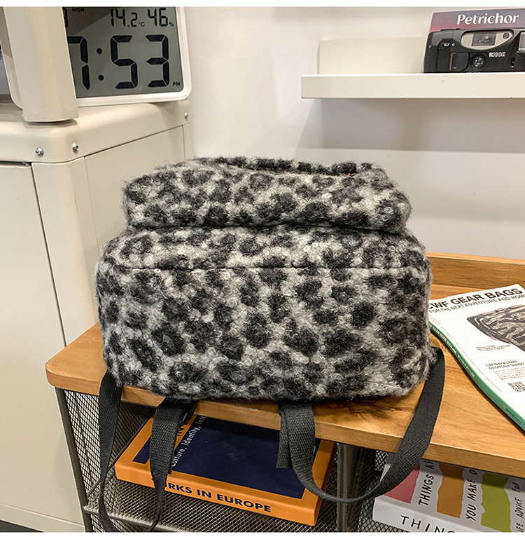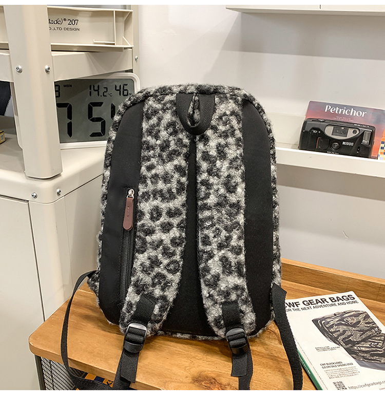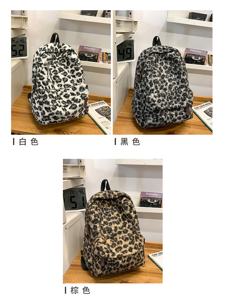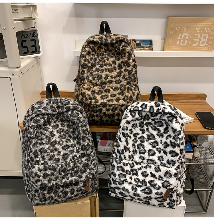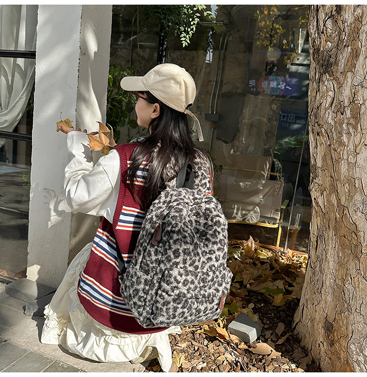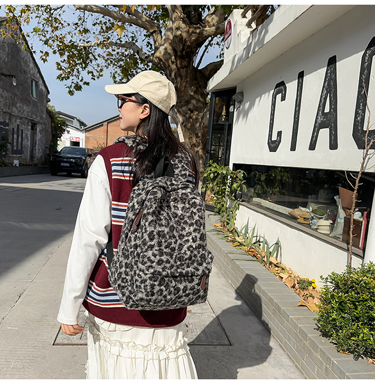 ニッチレトロヒョウ柄バックパック女性模造シェルパバックパック学生シンプルで多用途な大容量スクールバッグ