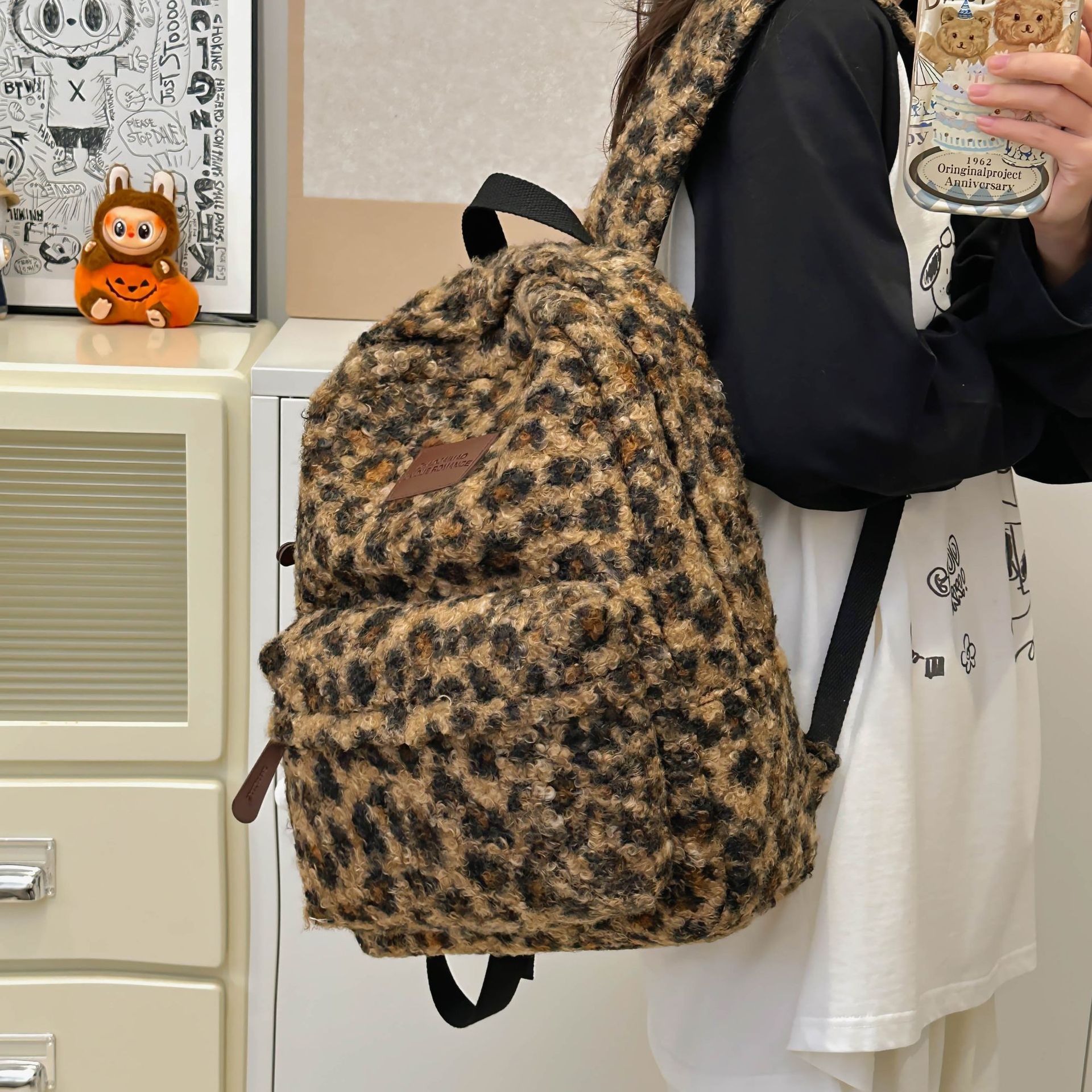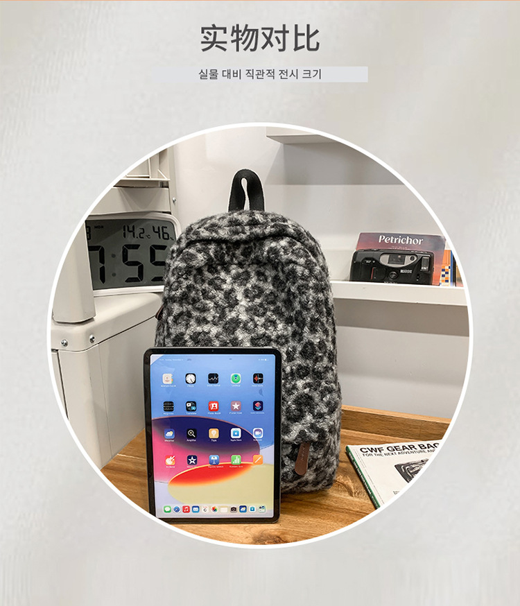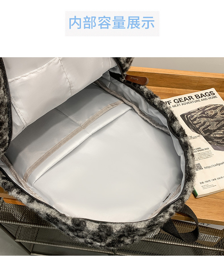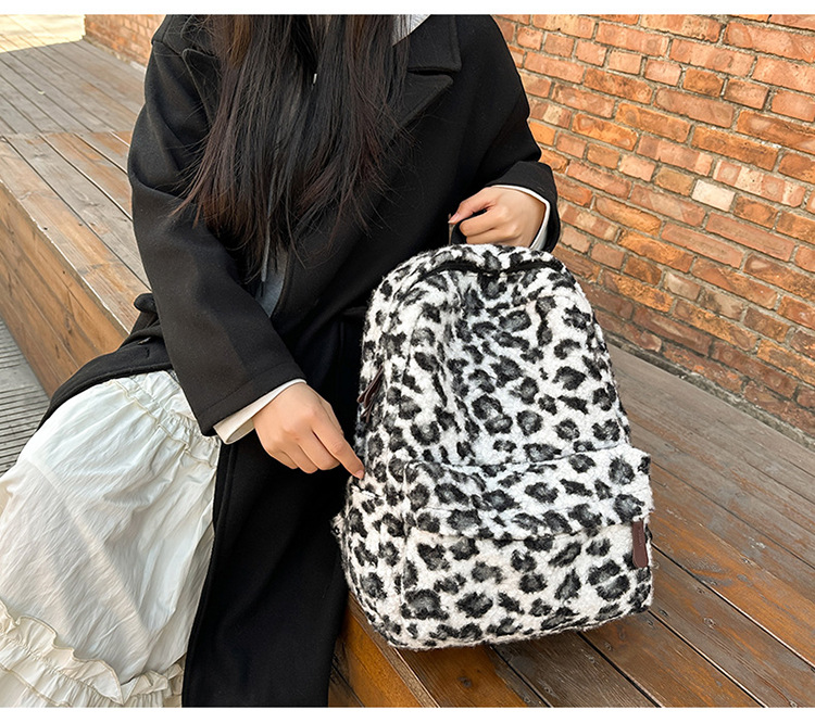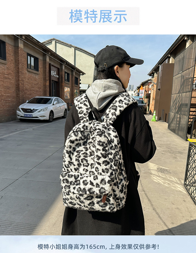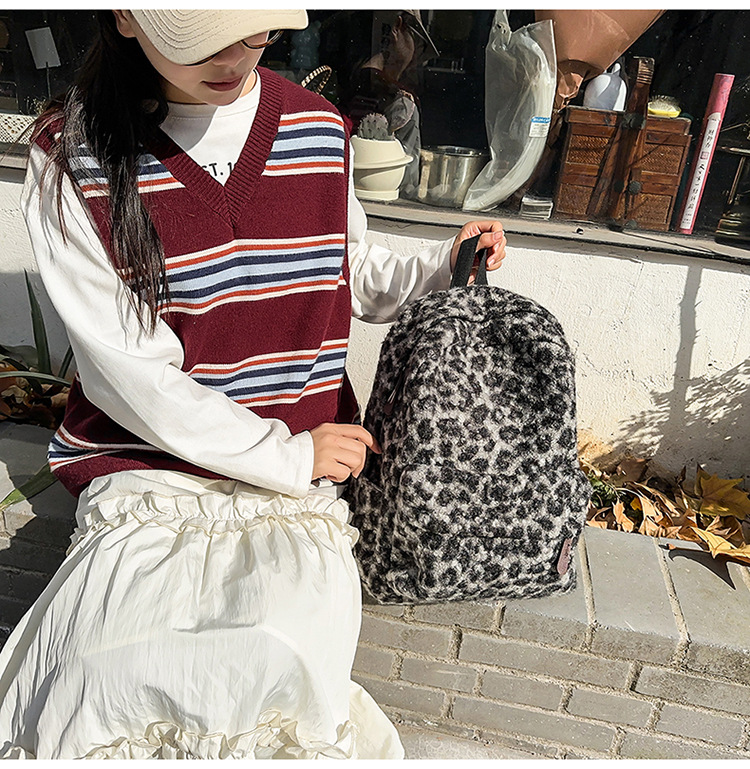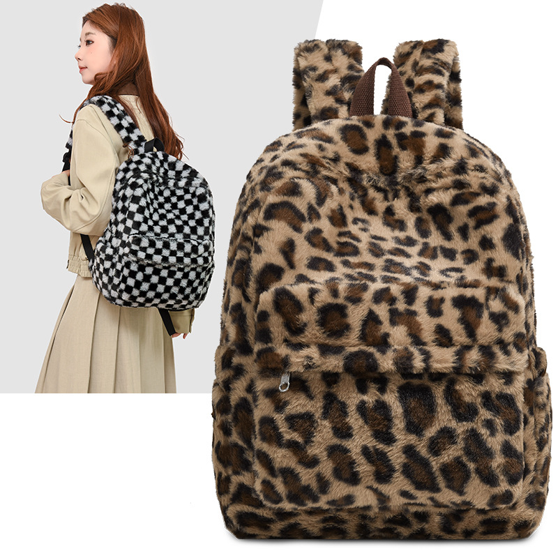 可爱毛绒双肩包高颜值上课通勤背包韩版ins豹纹百搭潮流学生书包