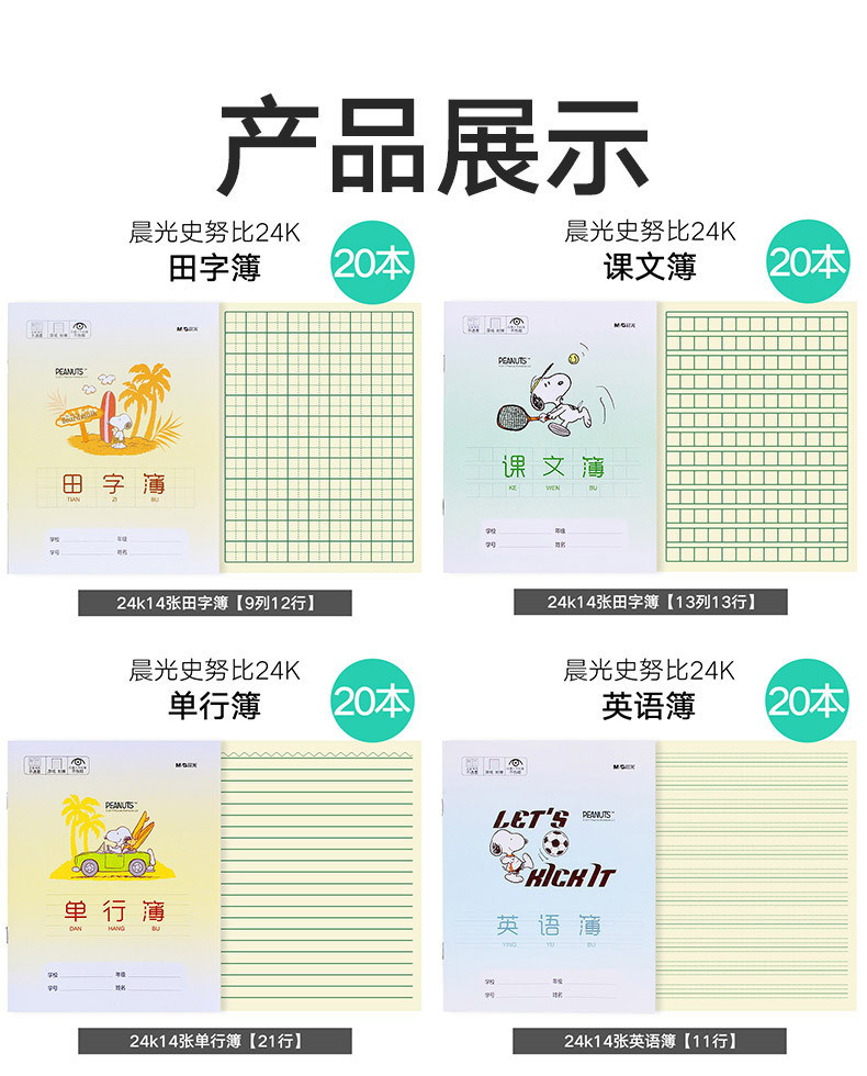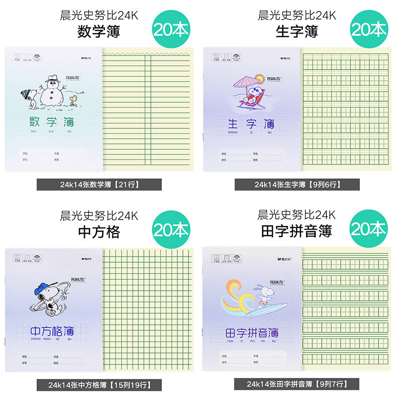 朝光スヌーピー作業帳小学生用保護眼統一標準作業ノート作業帳田字スペルブック