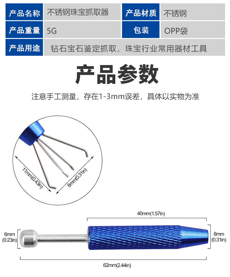 四爪クリップジュエリーショートスクラッチステンレス鋼ダイヤモンドグリップ固定ツールジュエリーグリップグリップツール