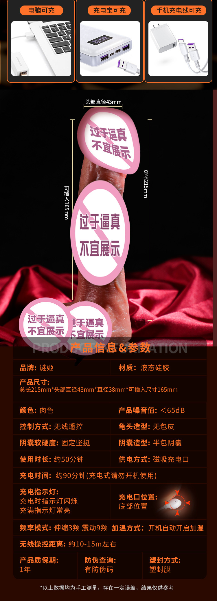 产品尺寸(cm) 总长215mm*头部直径43mm*直径38mm*可插入尺寸165mm
