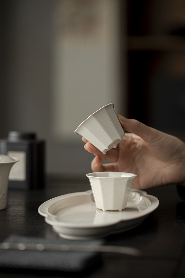 墨己越窯青磁器花口品茗杯耀州窯花型茶単杯陶磁器聚香杯トランペット