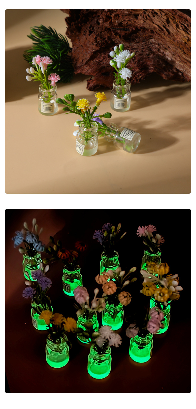 起爆立体シミュレーション花夜光ガラス瓶ins風diy創意デスクトップ置物自作車内装飾
