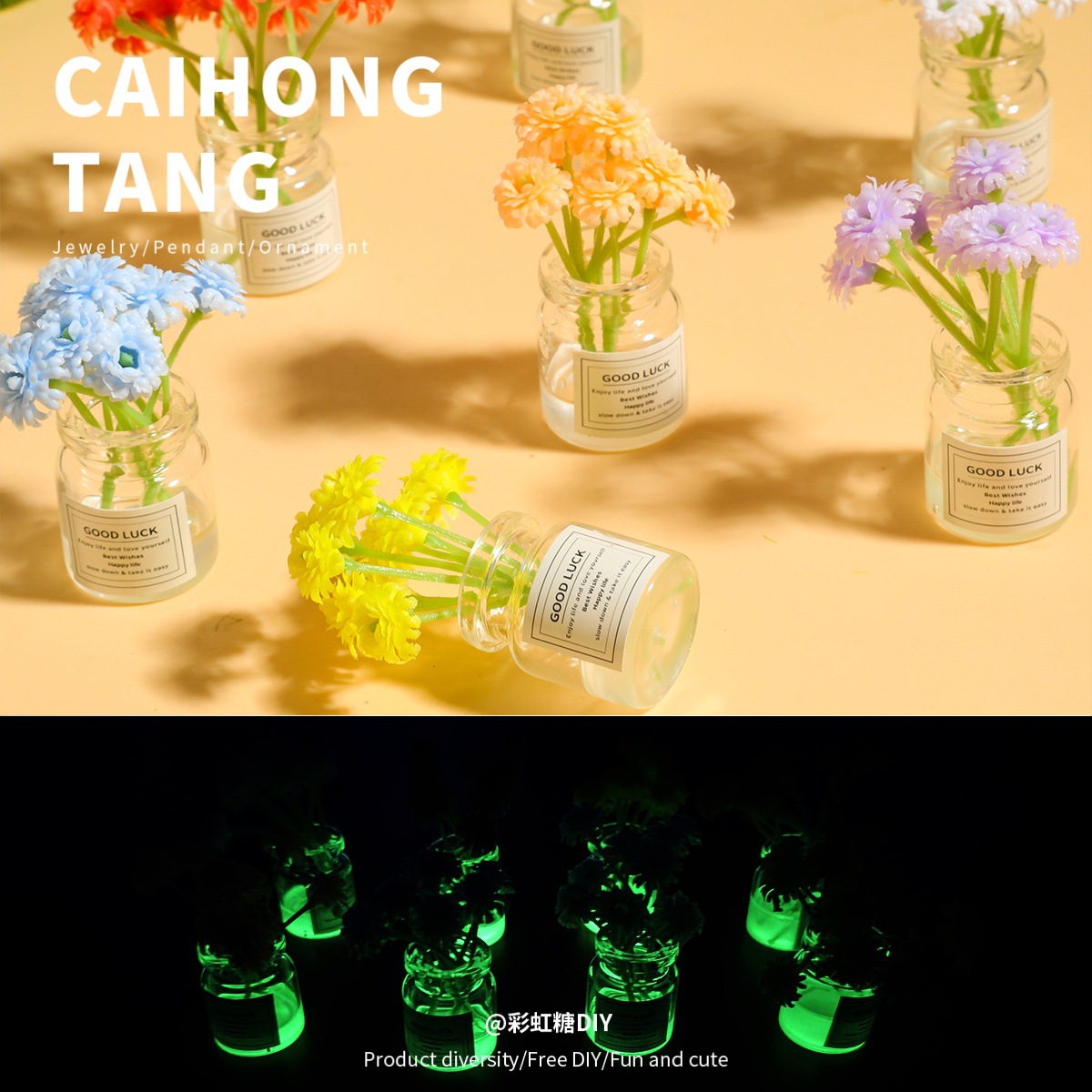 ミニチュア樹脂夜光ガラス花瓶小置物diy小清新車内装飾品自作ペンダント