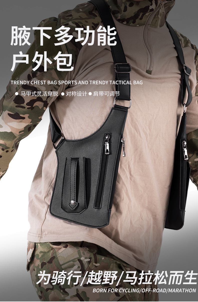 跨境新款男士背心马甲包户外战术包隐形腋下防盗包跑步运动小跨包
