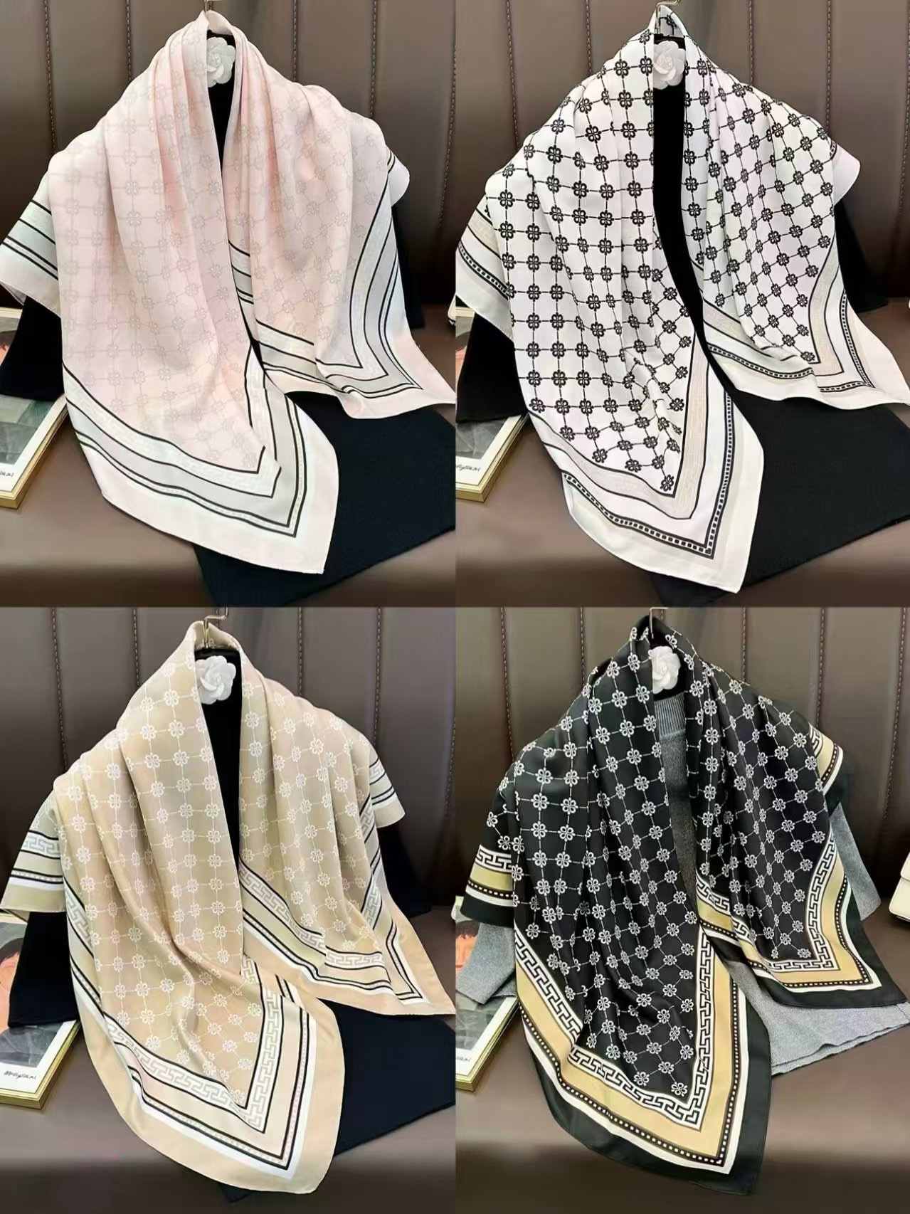 新商品の春夏網状マフラーはシンプルで、日焼け止めストールに合わせています。