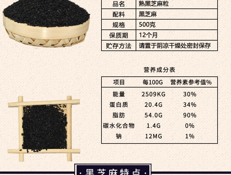 黒胡麻の粒は熟した黒胡麻500グラムを食べて、熟した胡麻の生黒胡麻を炒めます。