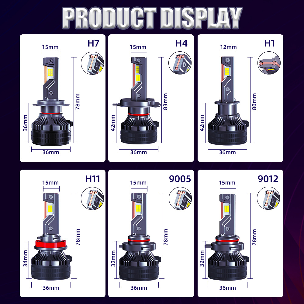 7. 单灯型号:H1 H3 H7 H8/H9/H11 9012 9005 9006