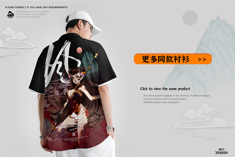 2023夏の着物クロスボーダーイラスト3dプリント7分シャツ道衿カーディガンゆるい男羽织出荷