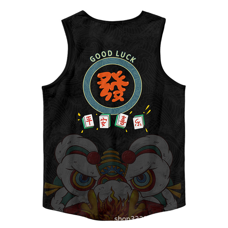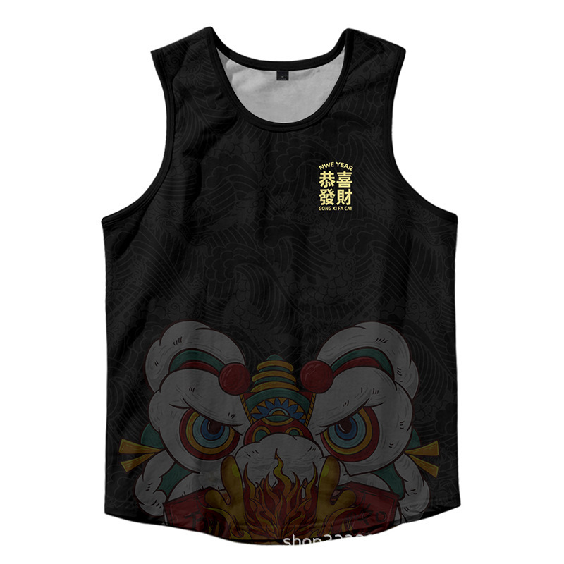 龍年国潮本命年夏龍衿覚醒獅子ベスト老漢シャツ男ゆるい中国風潮流通気百合
