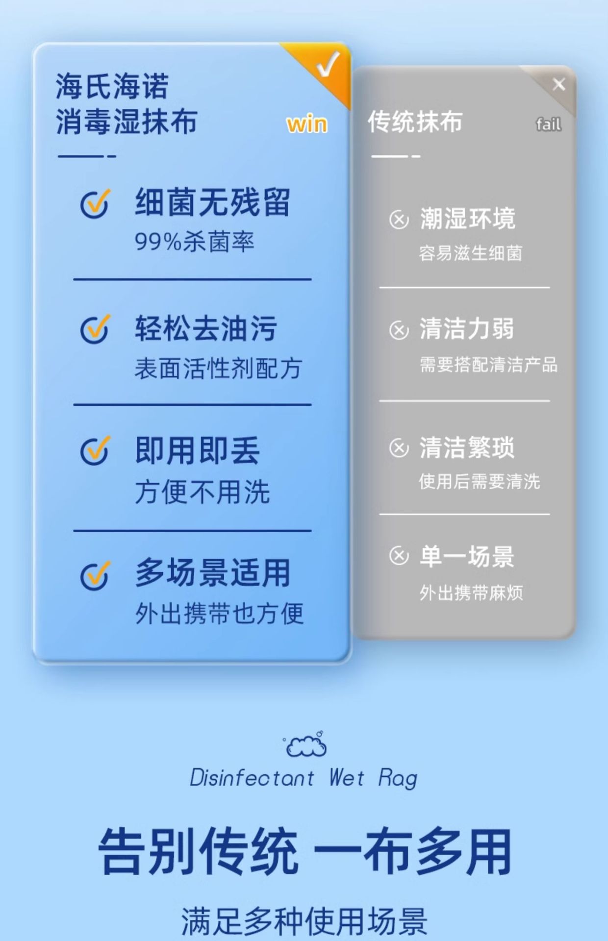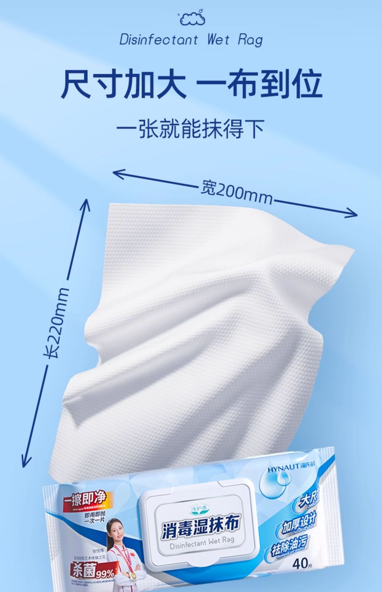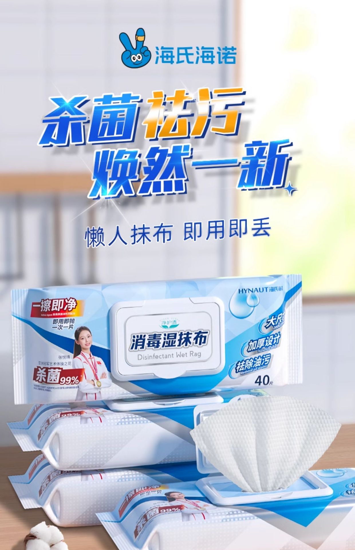 海氏海諾消毒湿雑巾使い捨て家庭汚染除去カバー付き大包装抽出式大型家庭用滅菌