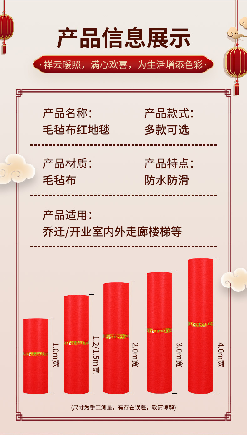 结婚红地毯一次性加厚无纺布毛毡布喜字婚庆红色耐磨楼梯农村地毯