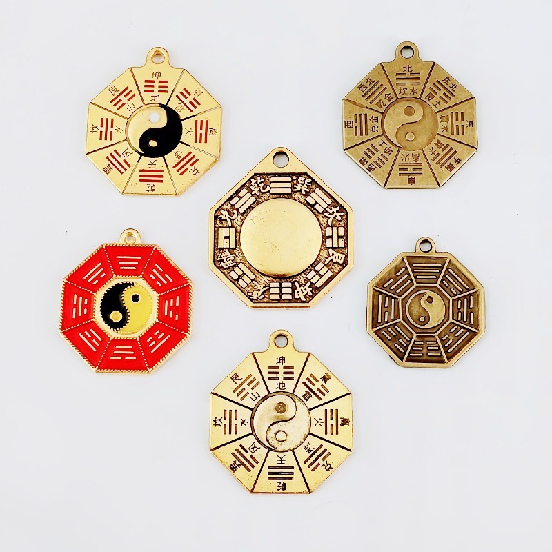 热卖合金仿铜阴阳八卦镜吊坠钥匙扣挂件凸面八卦铜钱吊坠配件批发