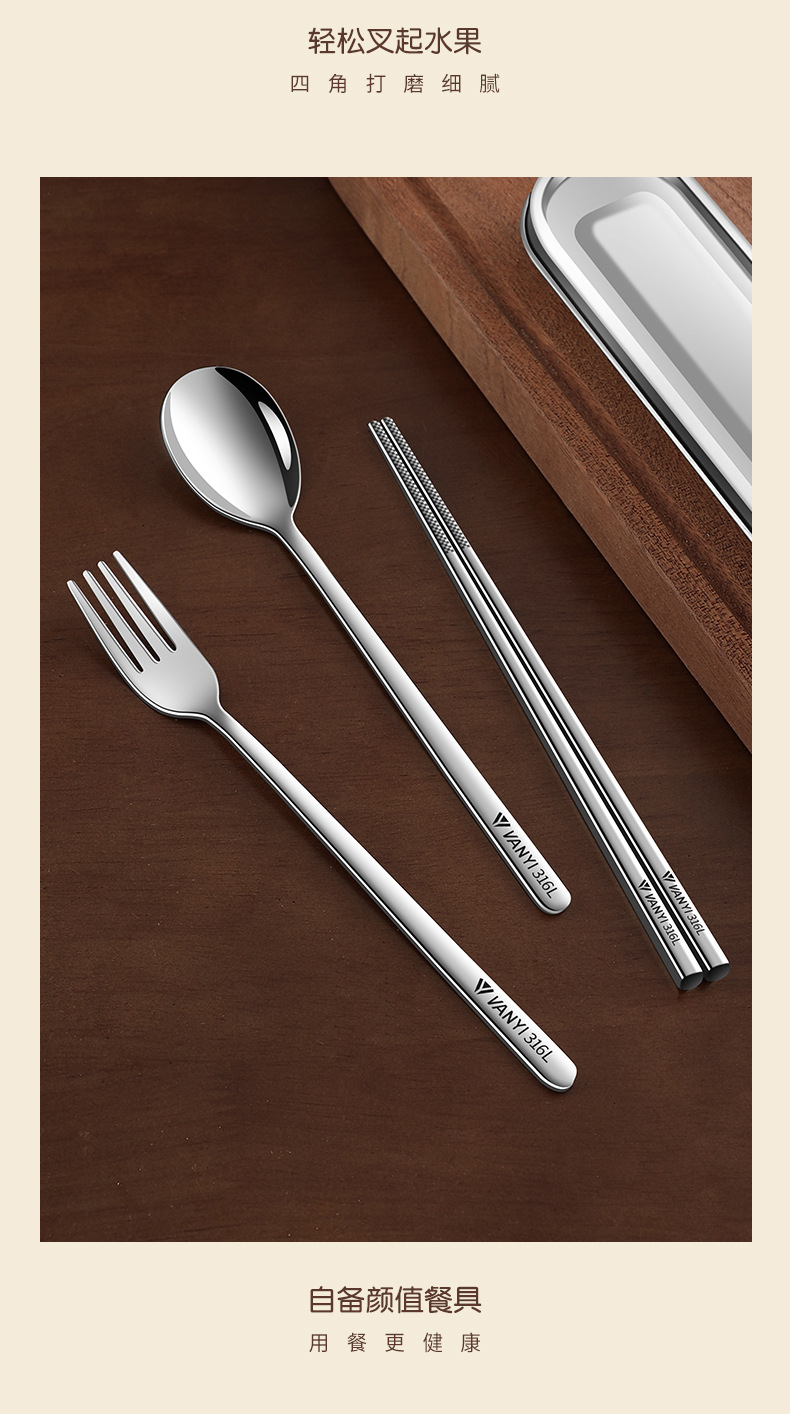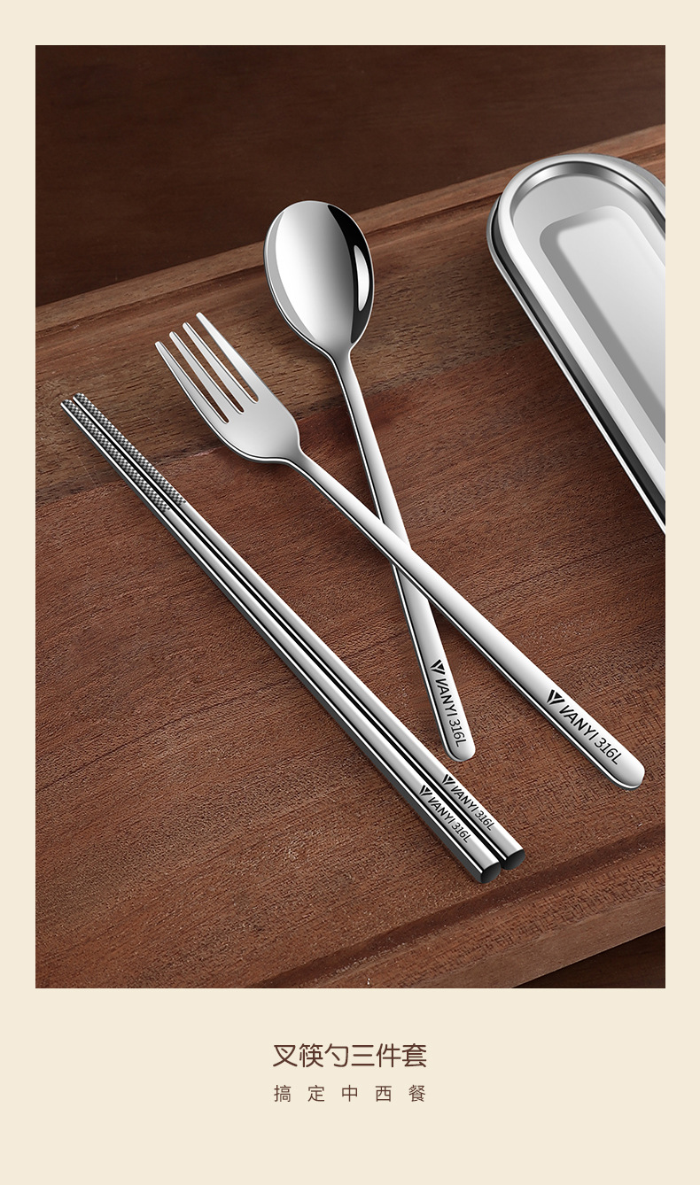 316L不锈钢便携餐具套装户外勺子筷子套装上班族学生专用餐具盒