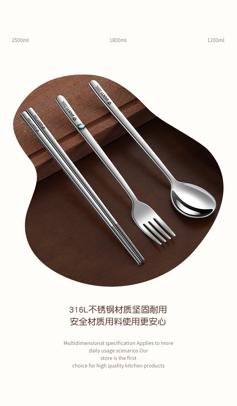 316L抗菌ステンレス食器カバー携帯セット成人学生サラリーマン収納ケース箸スプーン