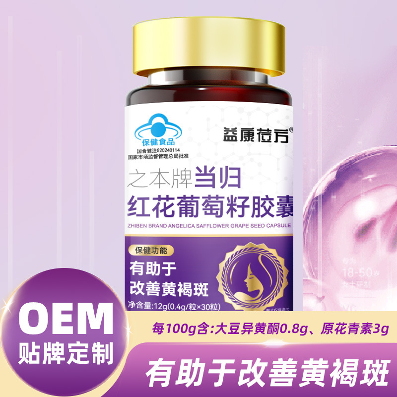 肝斑の改善に役立つ、本物のブランドである当帰紅花グレープシードカプセルには大豆イソフラボンが含まれています(OEM)