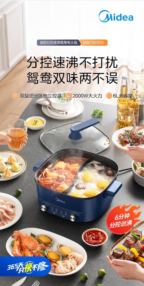 美しい電気鍋オシドリ鍋電気煮鍋多機能鍋ダブルコントロール家庭用6l多用途鍋hg c 3012