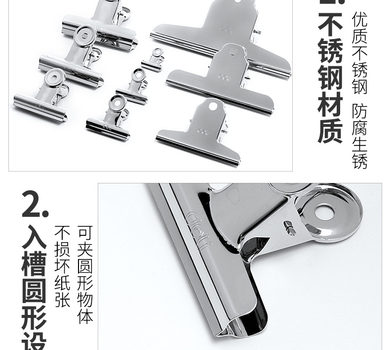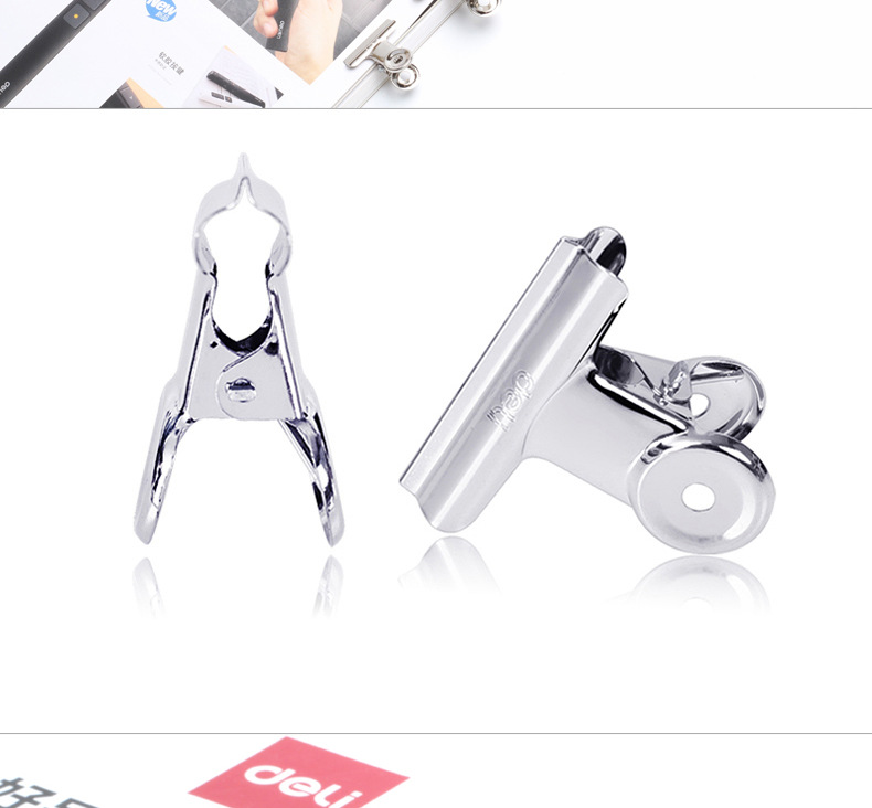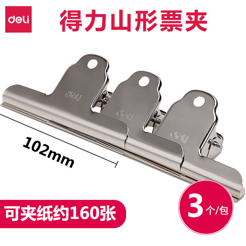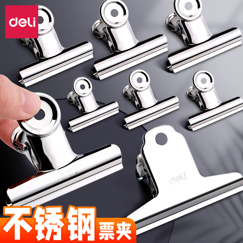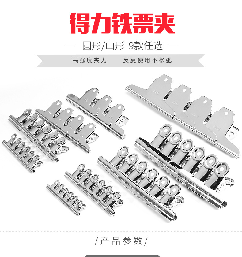 得力圆形夹山形夹不锈钢特大号小号小夹子票据夹强力金属凭证票夹