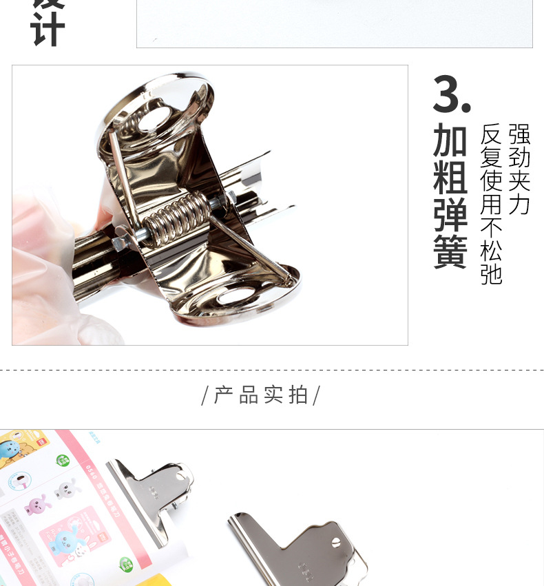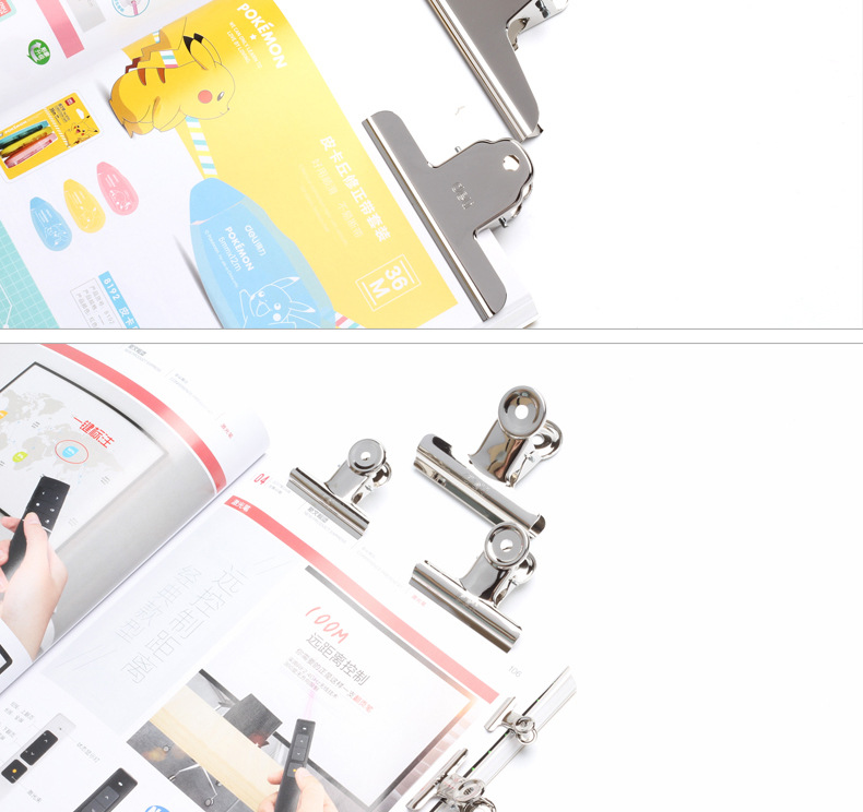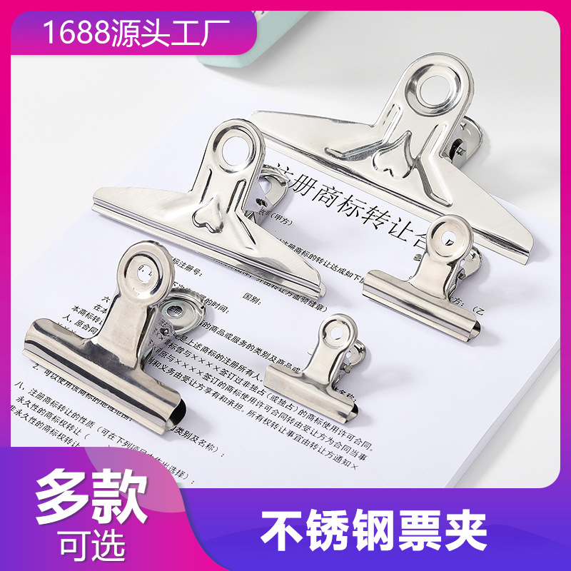 文件夹子文具画板铁夹子不锈钢票夹强力票据夹多功能办公山型夹