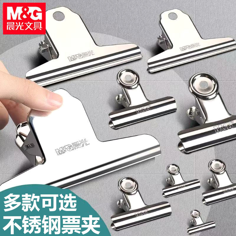 晨光山形夹票据夹财务不锈钢夹子大号金属票夹大铁夹单据圆形票夹