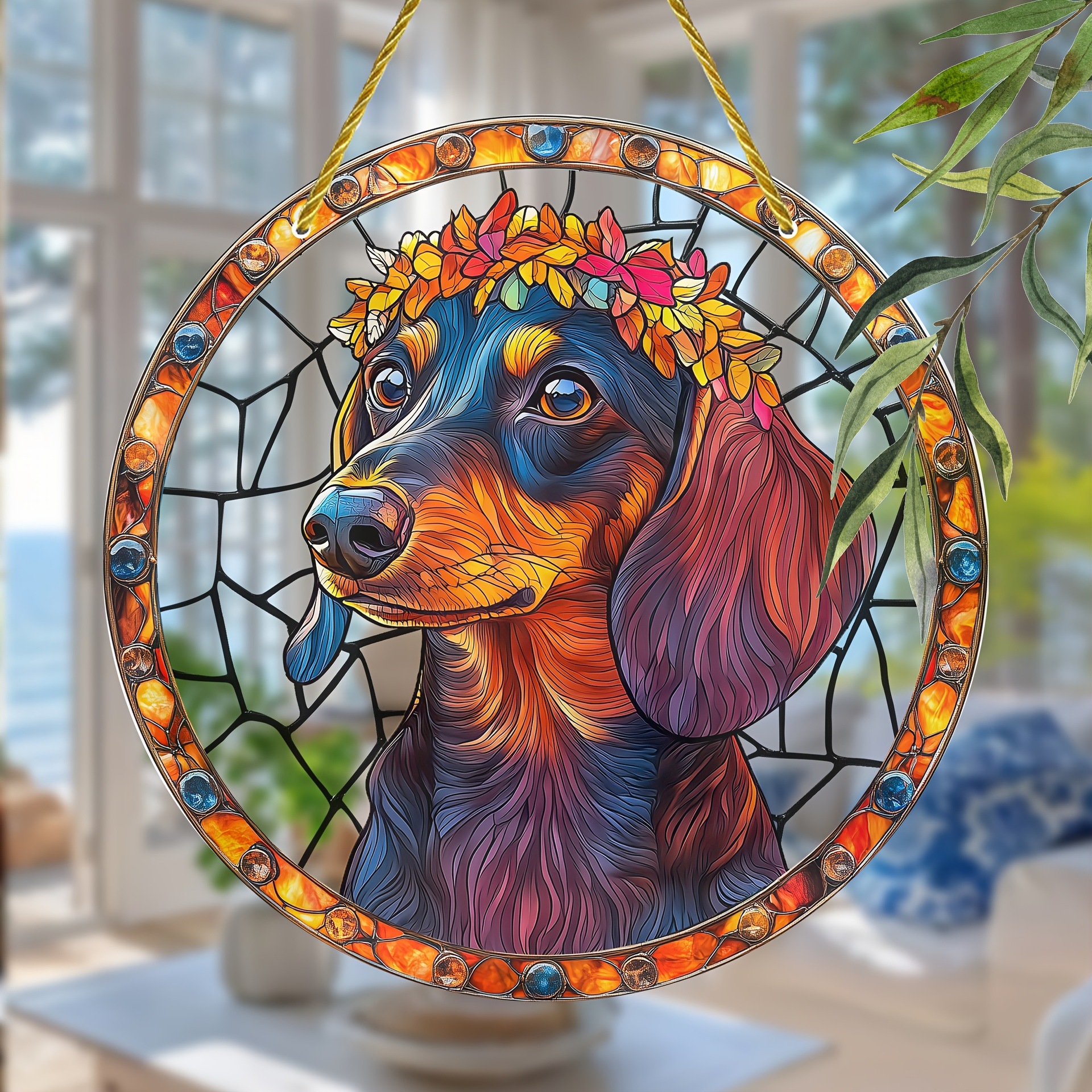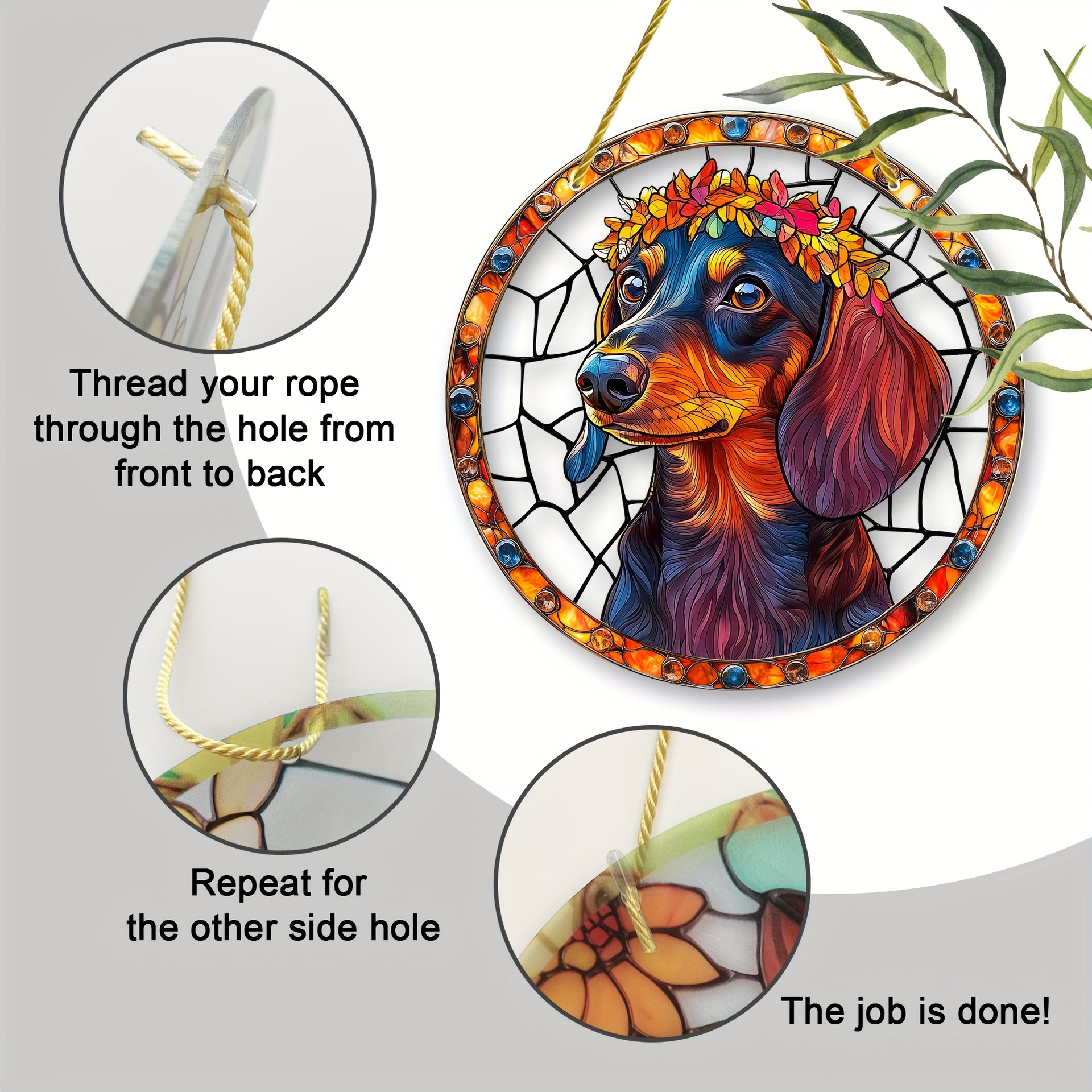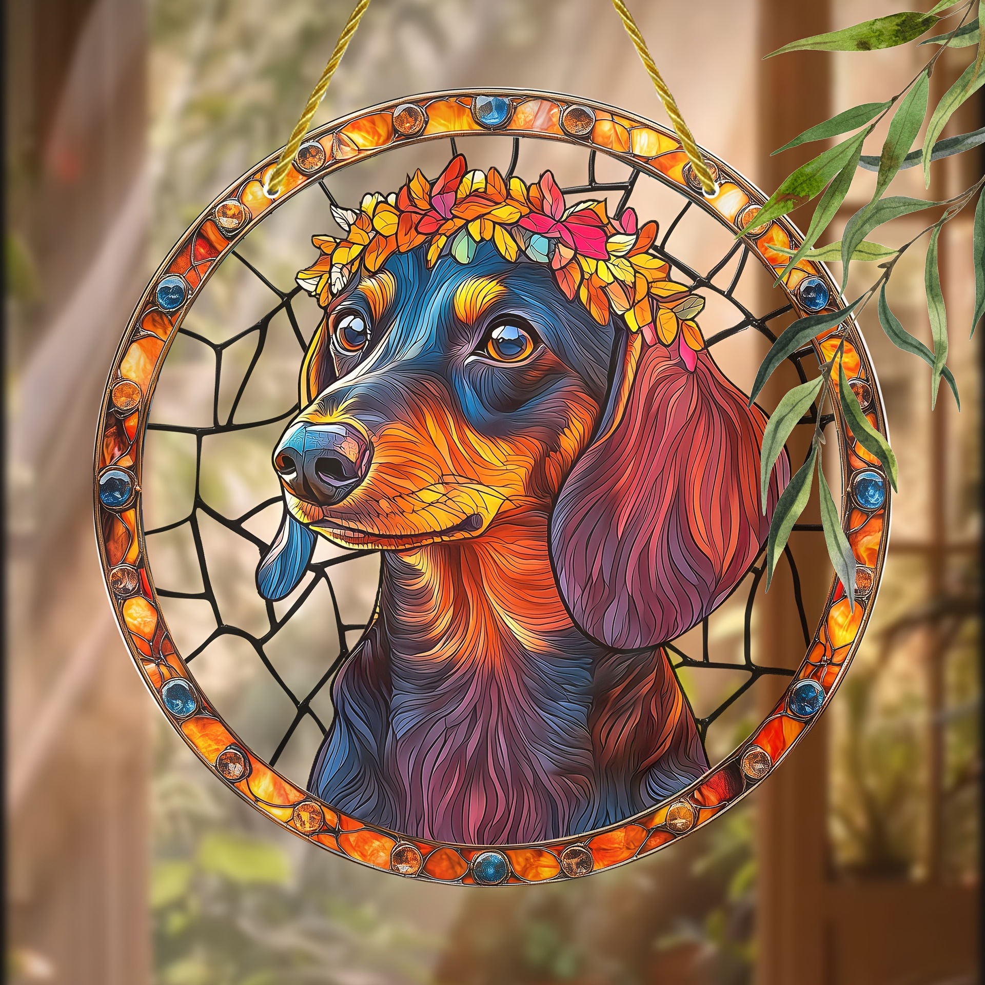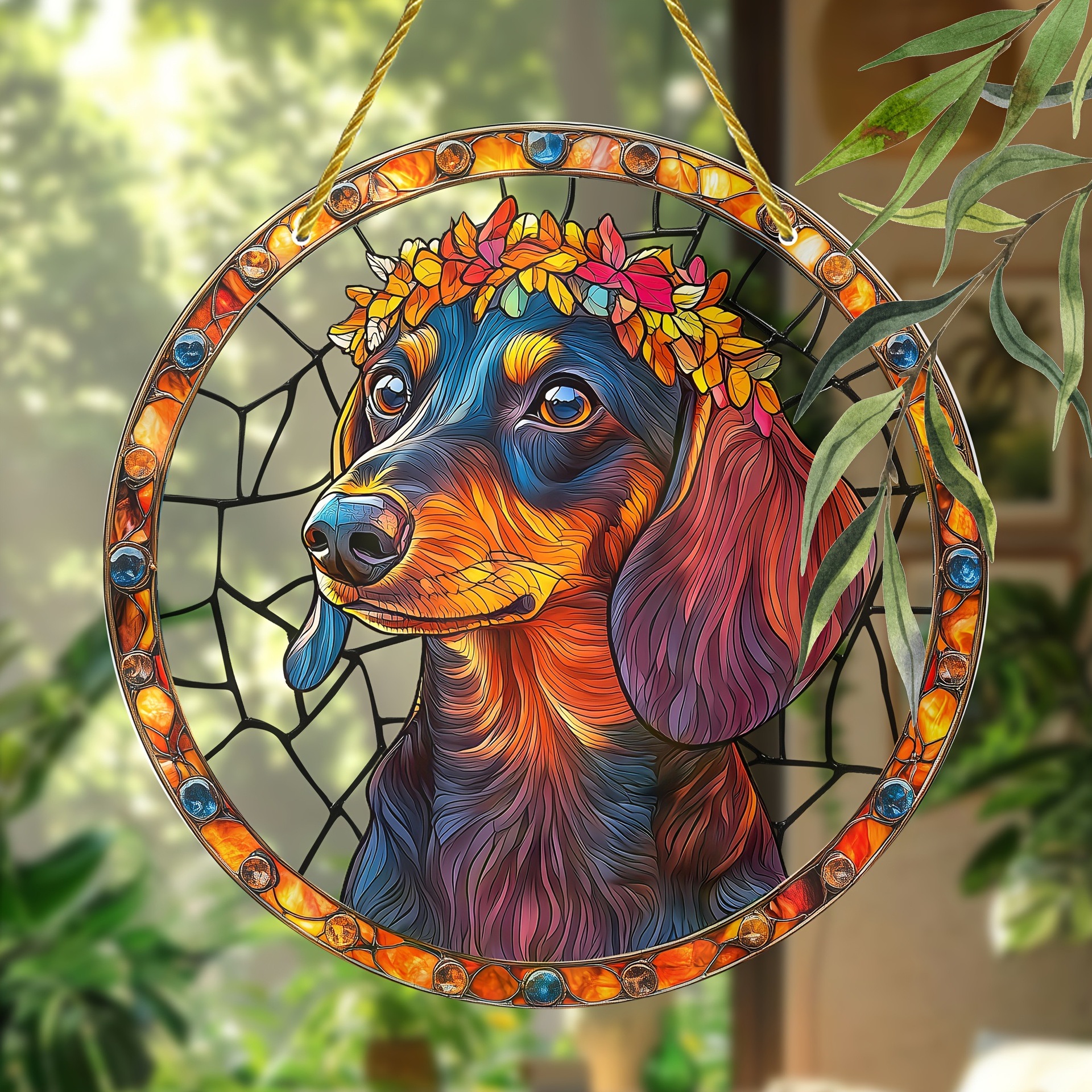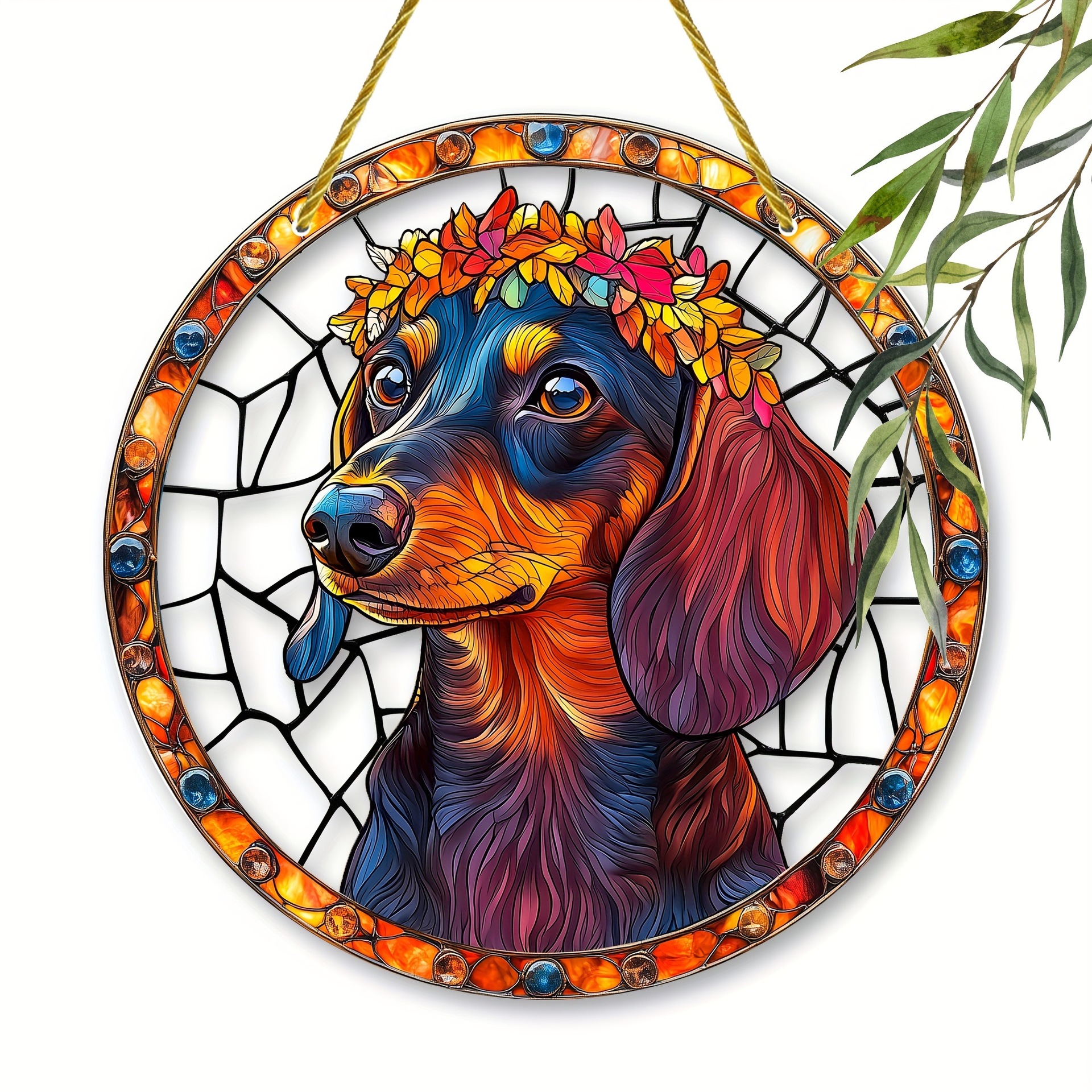 1ピースボヘミアンソーセージ犬花リング付き8インチx 8インチ吊り下げ式キャッチャー-鲜やかな