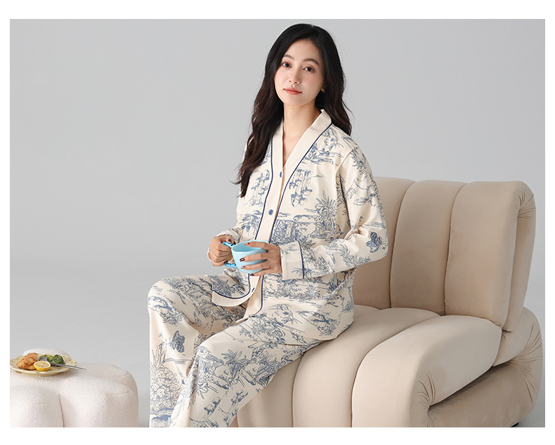 【7a抗菌】カップルパジャマ女性春秋長袖カーディガン