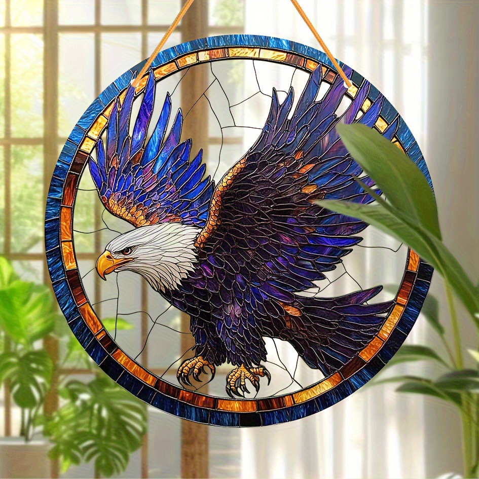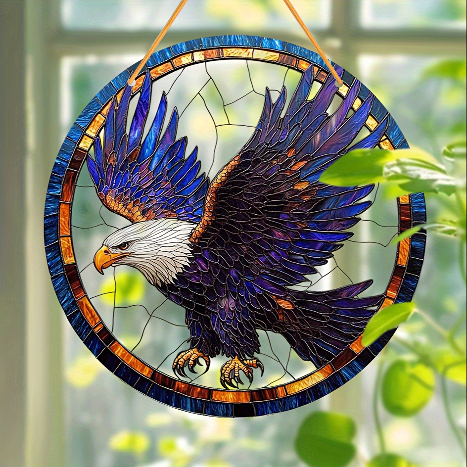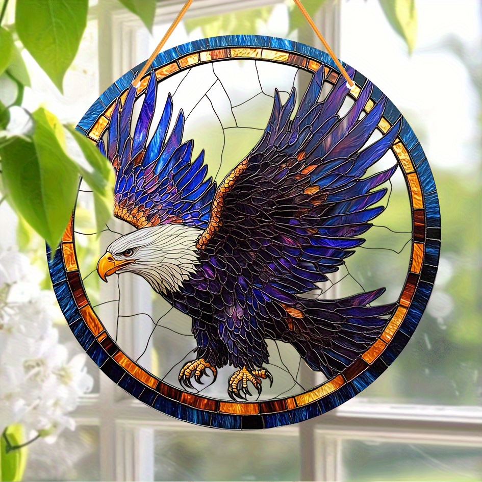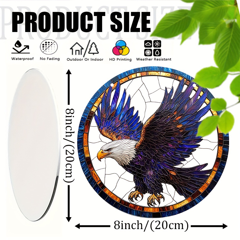 1ピース、8インチx 8インチラウンドアクリルイーグルサンキャッチャー、ステンドグラススタイル窓