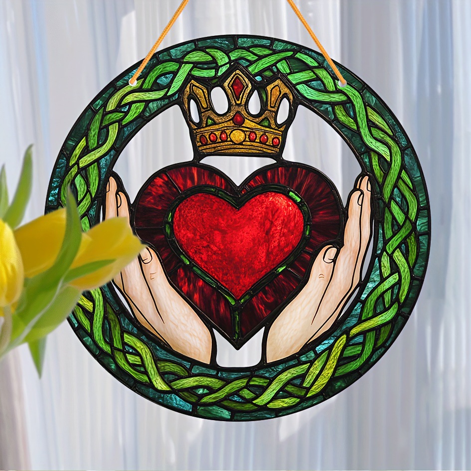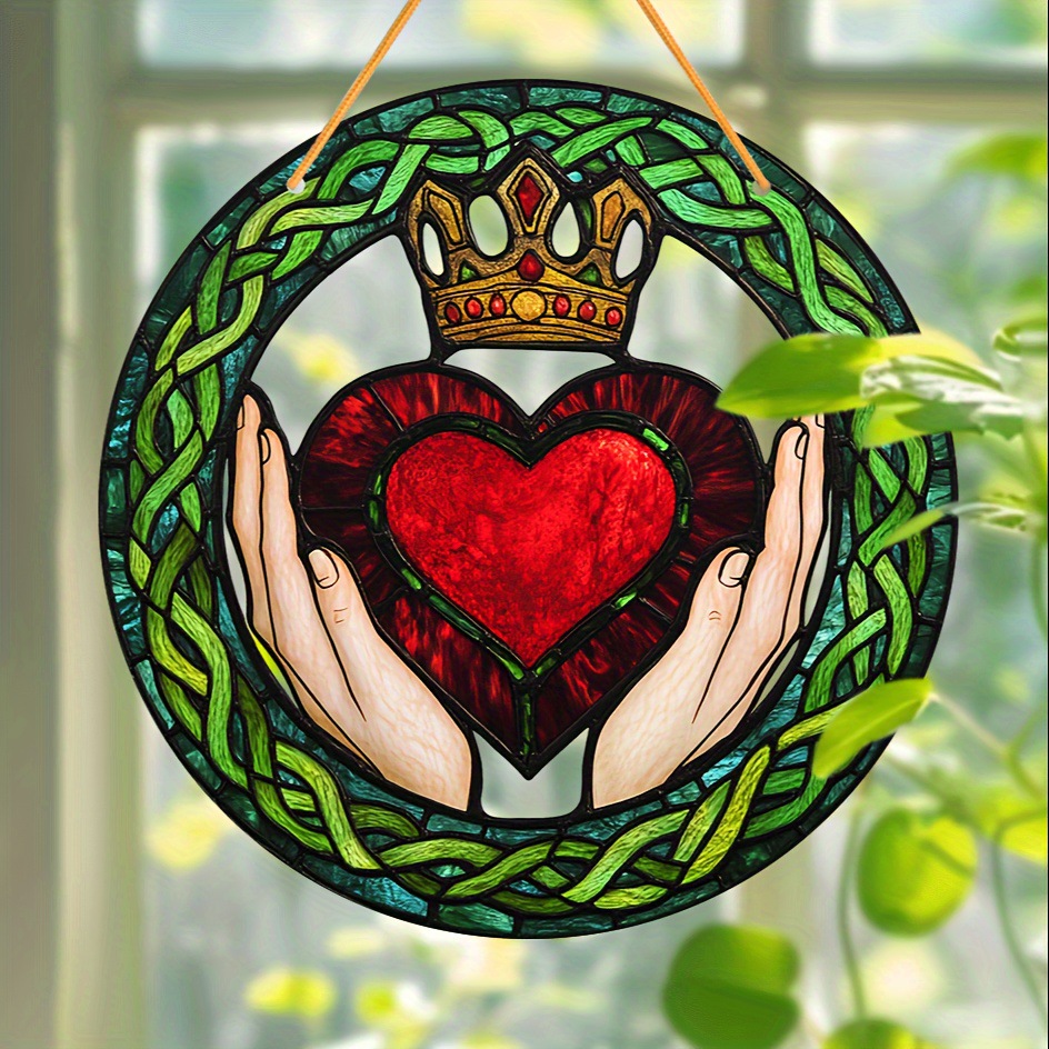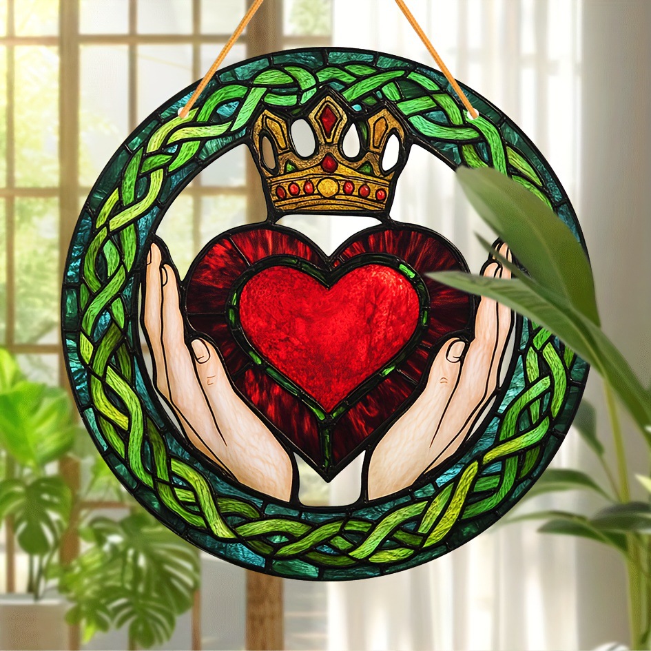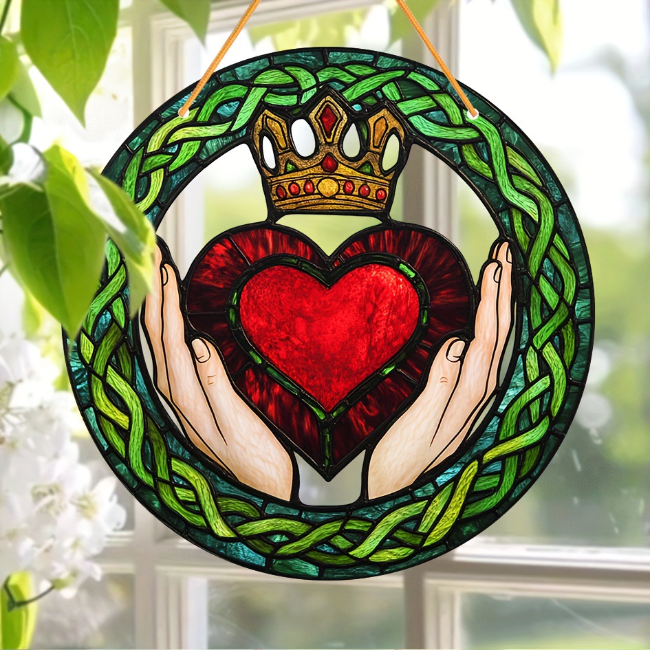 1ピース、Claddaghサンキャッチャーアクリルラウンドベルトケルト结び目デザイン (8 ''' x 8''