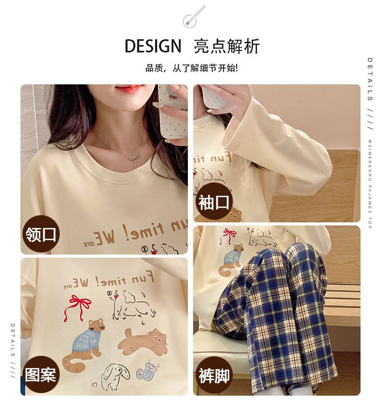 クロスボーダーのパジャマの女性の春と秋の新型の胸のパッドの丸首の長袖のかわいい漫画のネットの赤い少女の家庭服のスーツ