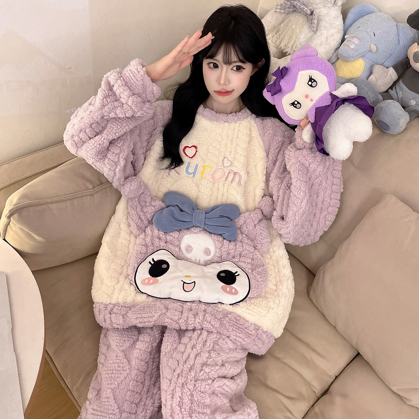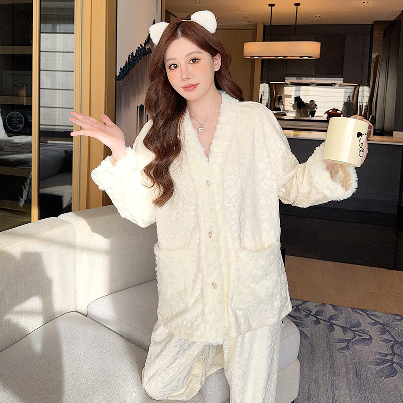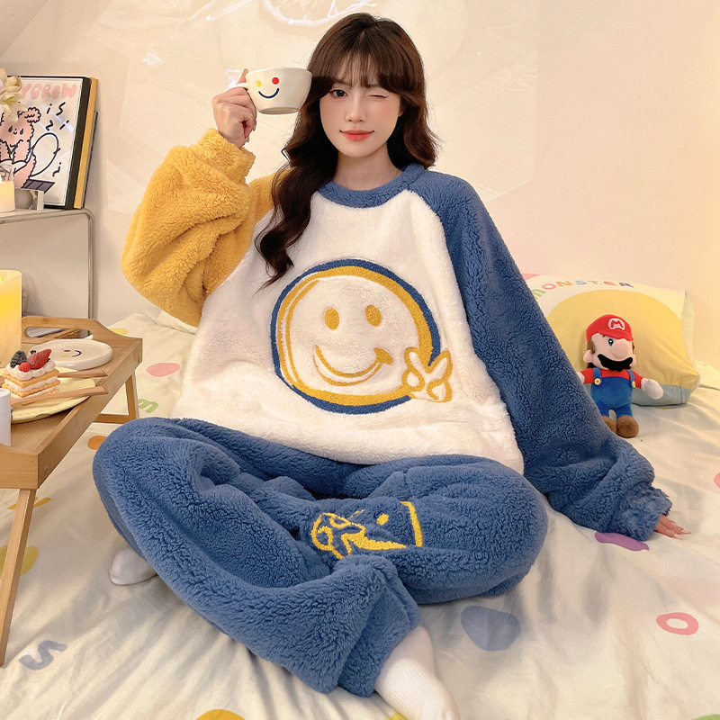 新款长袖海岛绒睡衣女士秋冬保暖甜美加厚可爱家居服两件套可外穿