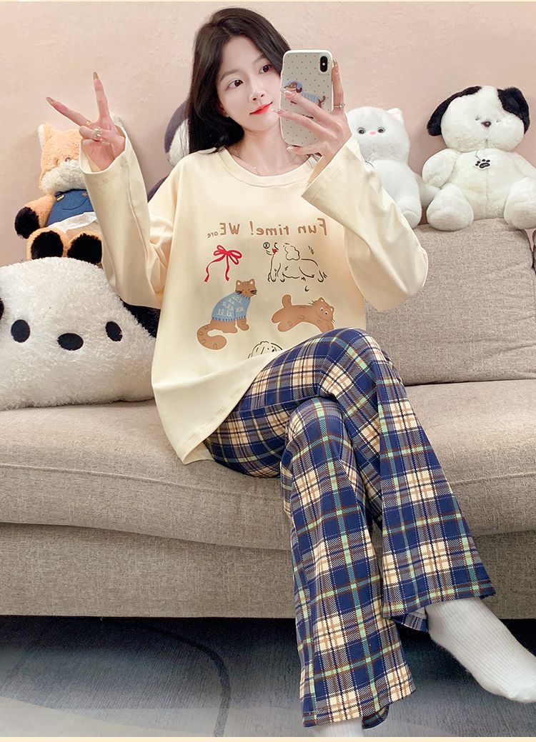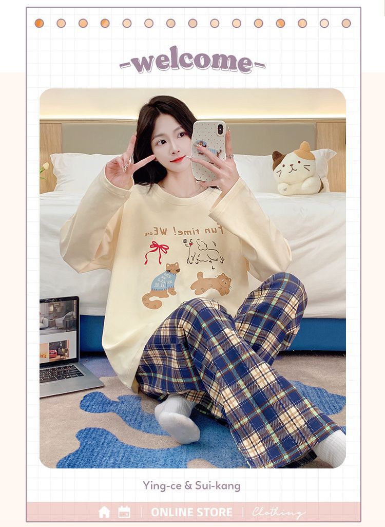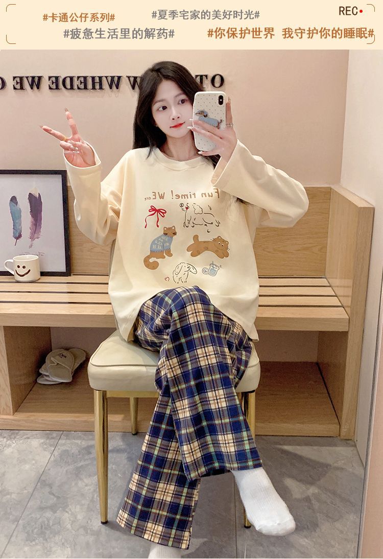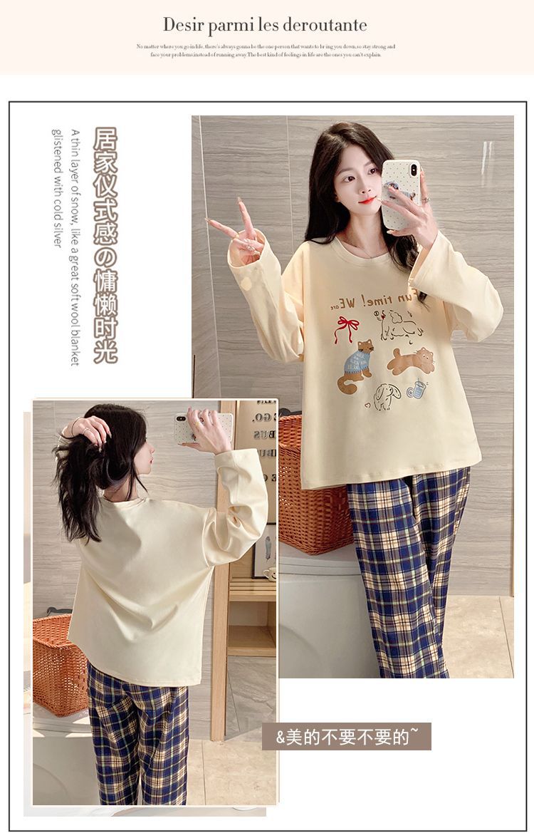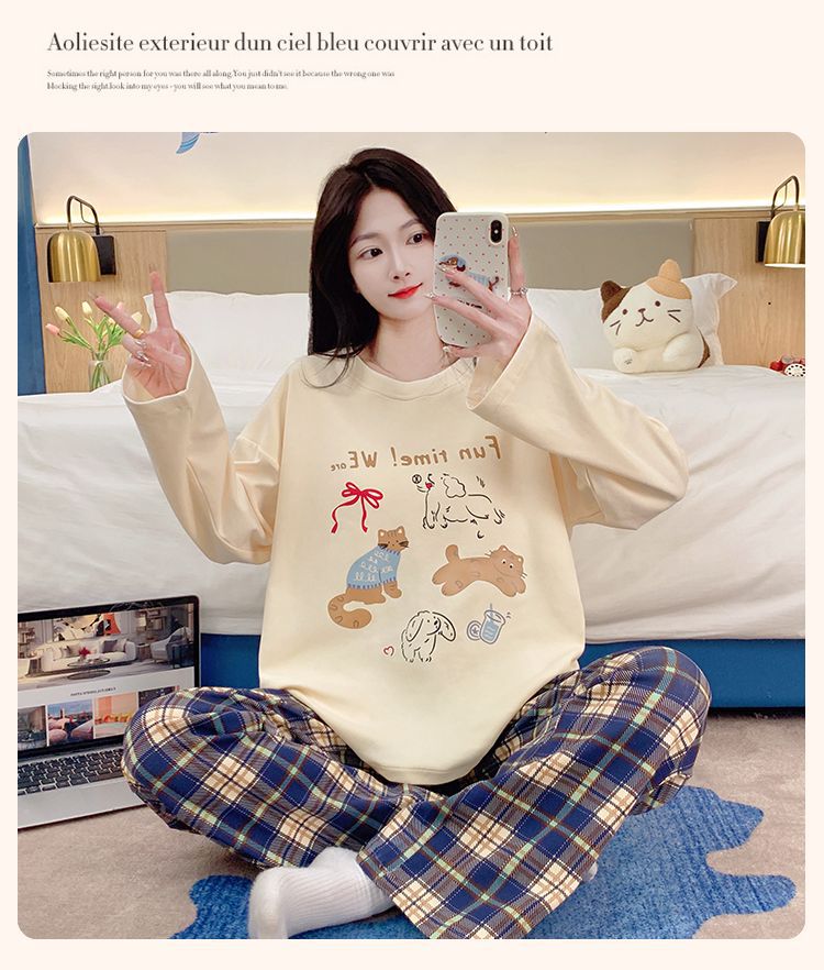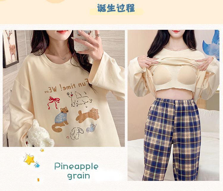 雲の綿のパジャマの女性は胸を持って春と秋の新型の韓国版の甘いins風のゆったりしている長袖の部屋の服のスーツを敷きます。