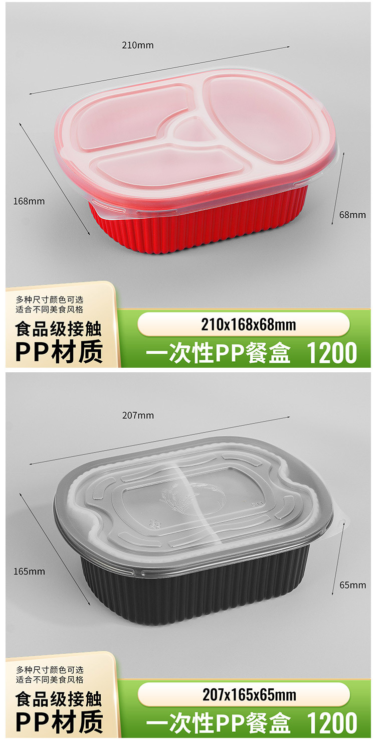 工場直売使い捨て弁当箱食品級pp材質厚手蓋付き梱包箱商用ネット赤外食弁当箱