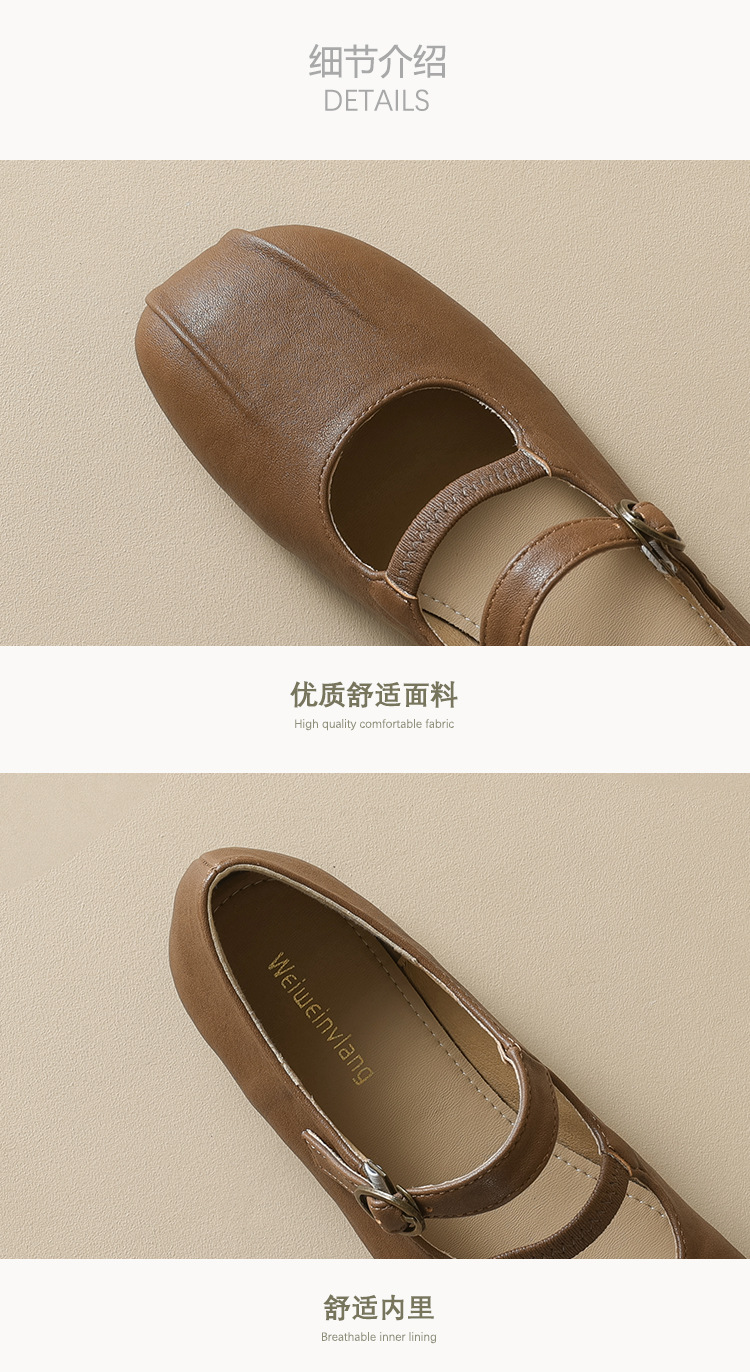 威威の女の人8835-1角頭の靴の女性の平底の1字は浅い口の復古の柔らかい底のバレエのメアリー珍の靴を持ちます。