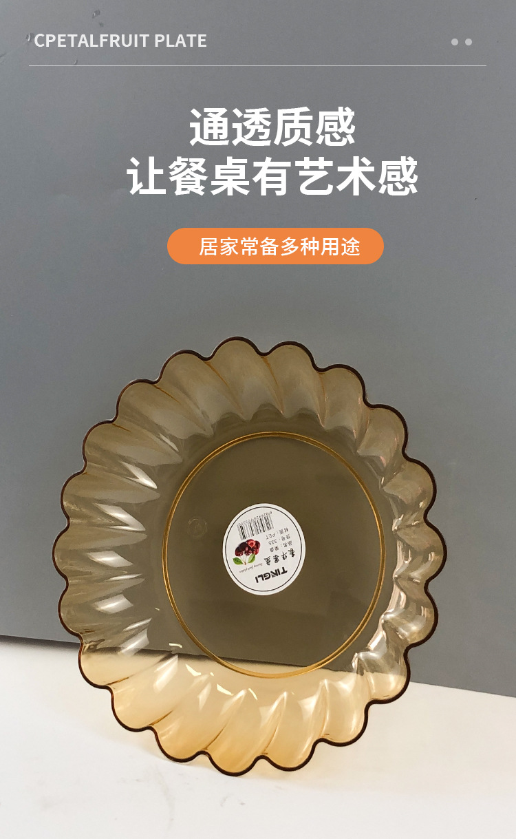 高颜値小食皿商用高級軽贅沢果物皿金辺透明果物皿家庭用プラスチックキャンディー皿