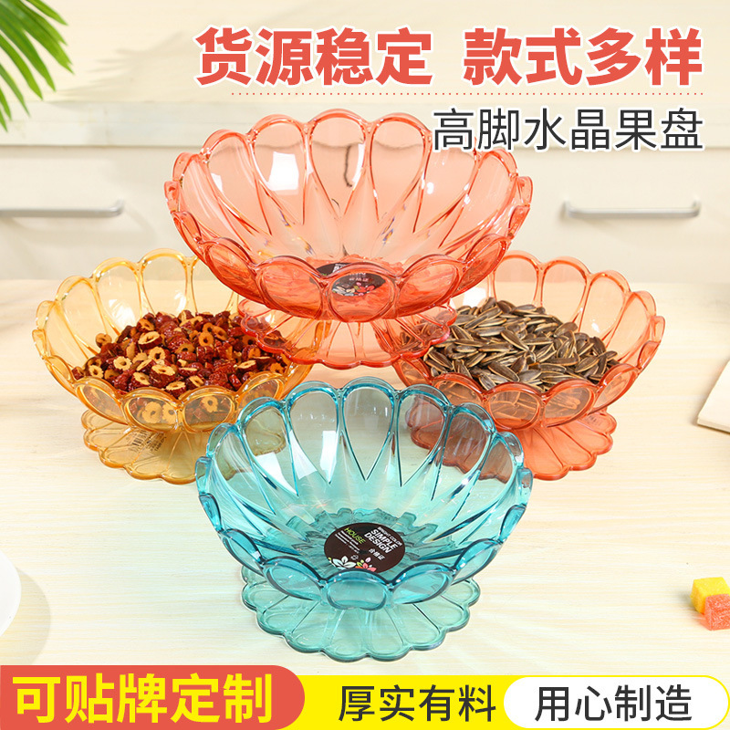 果物皿卸売り新型家庭用プラスチック透明高颜値軽贅沢客間果物高脚中国式茶点果物皿