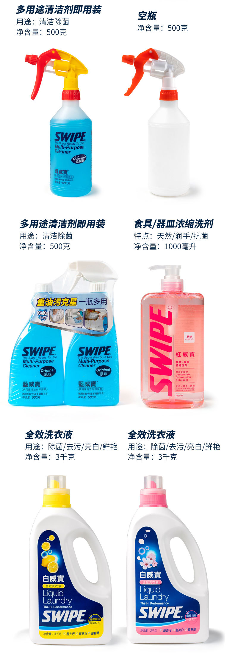 使用方法:日常清洁:1份蓝威宝加10份水,在污渍上一喷一抹,即光洁如新。顽固污渍:1份蓝威宝加3份水,在顽固污渍上一喷,待蓝威宝渗透,再以干布擦拭。主要成份:表面活性剂、助洗剂、螯合剂。