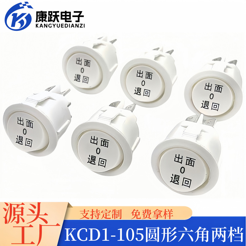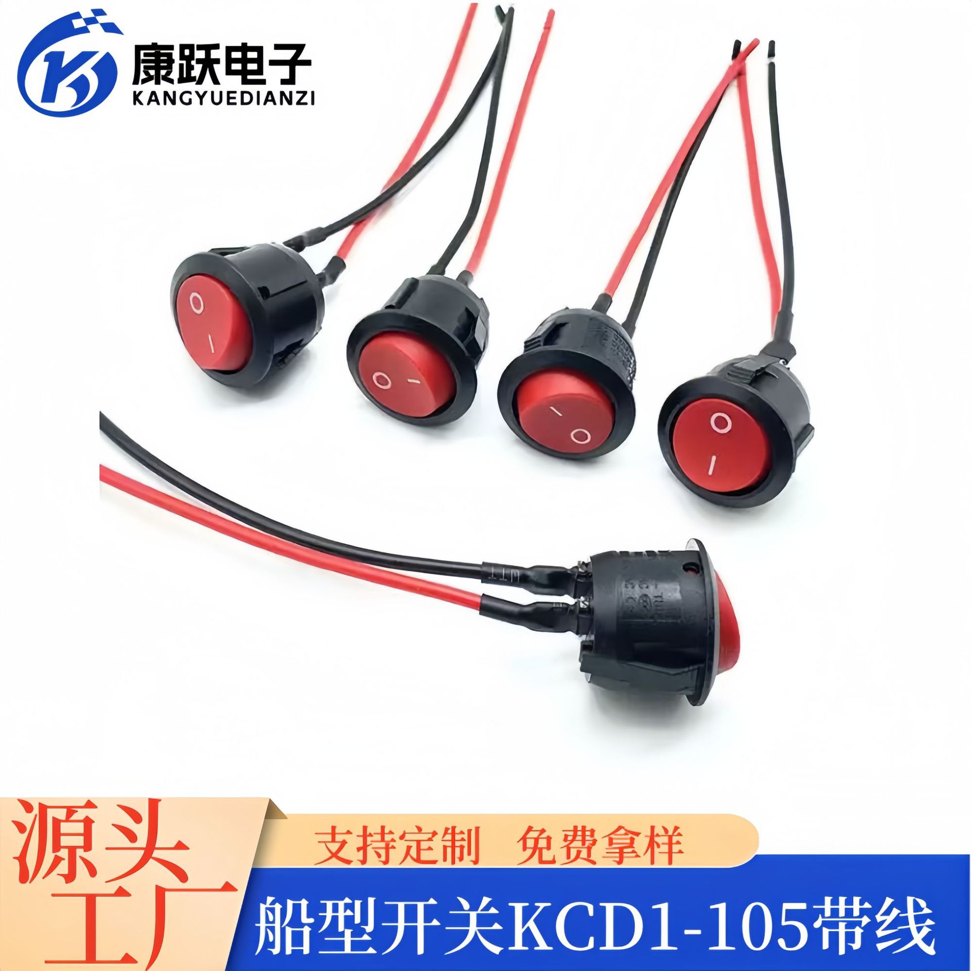 KCD1-105 ボート型スイッチ ライン付き 丸型ボタン 2本脚 2速 鉄/銅/ロッカースイッチ 電源スイッチ
