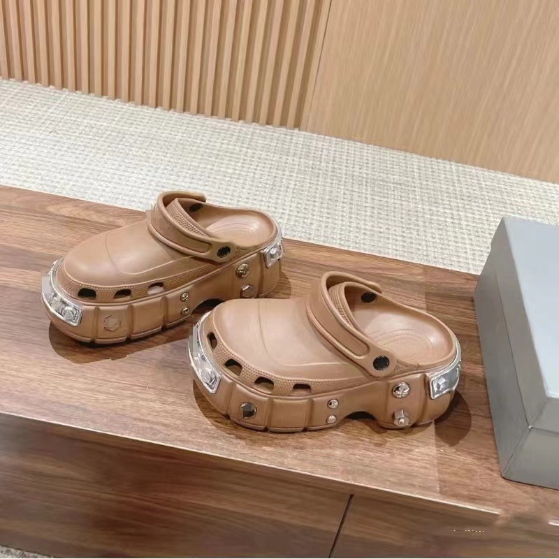 2024夏の新型高バージョンの金属包頭洞靴の女性の松餅の厚い底の百合はネットの赤いスリッパの男性を着ます。
