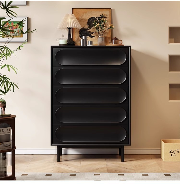 フランス風中世レトロ無垢材五段チェスト、中世風リビングチェスト、玄関チェスト、小部屋寝室ベッドサイド/ベッドエンドチェスト