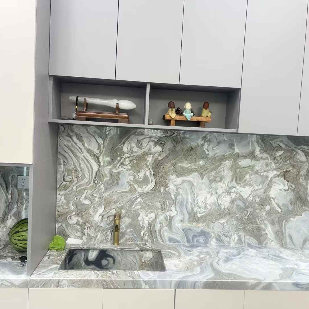 オーシャンストームマーブルデスクトップカスタムアイランドテーブルダイニングテーブルパネル高級石背景壁ナチュラル