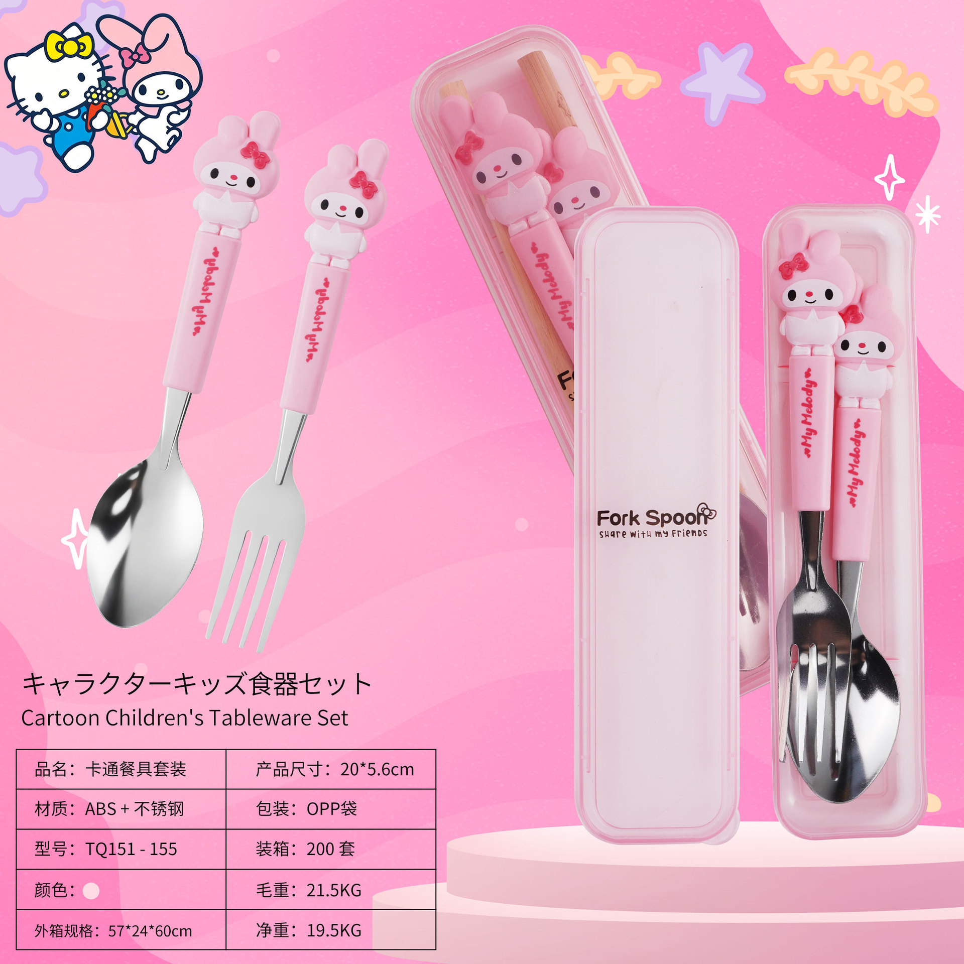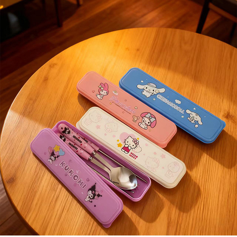 2クロスボーダーサンリオクロミステンレス食器セット大耳犬パーチャ犬スプーン箸美楽ティ三点