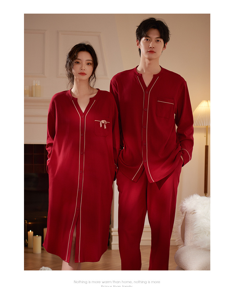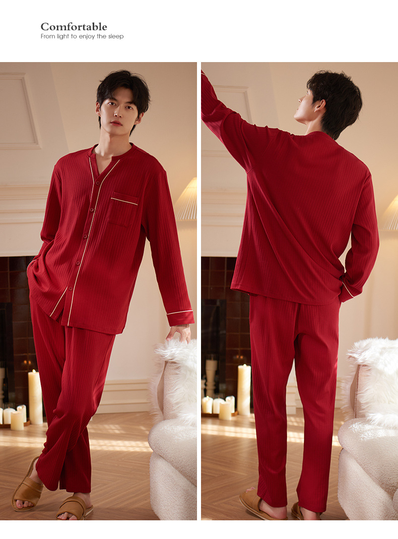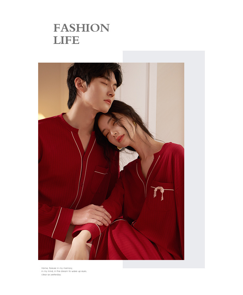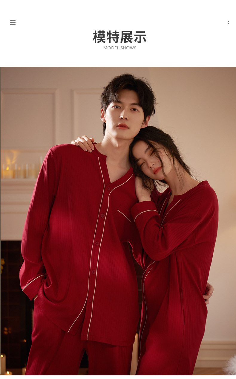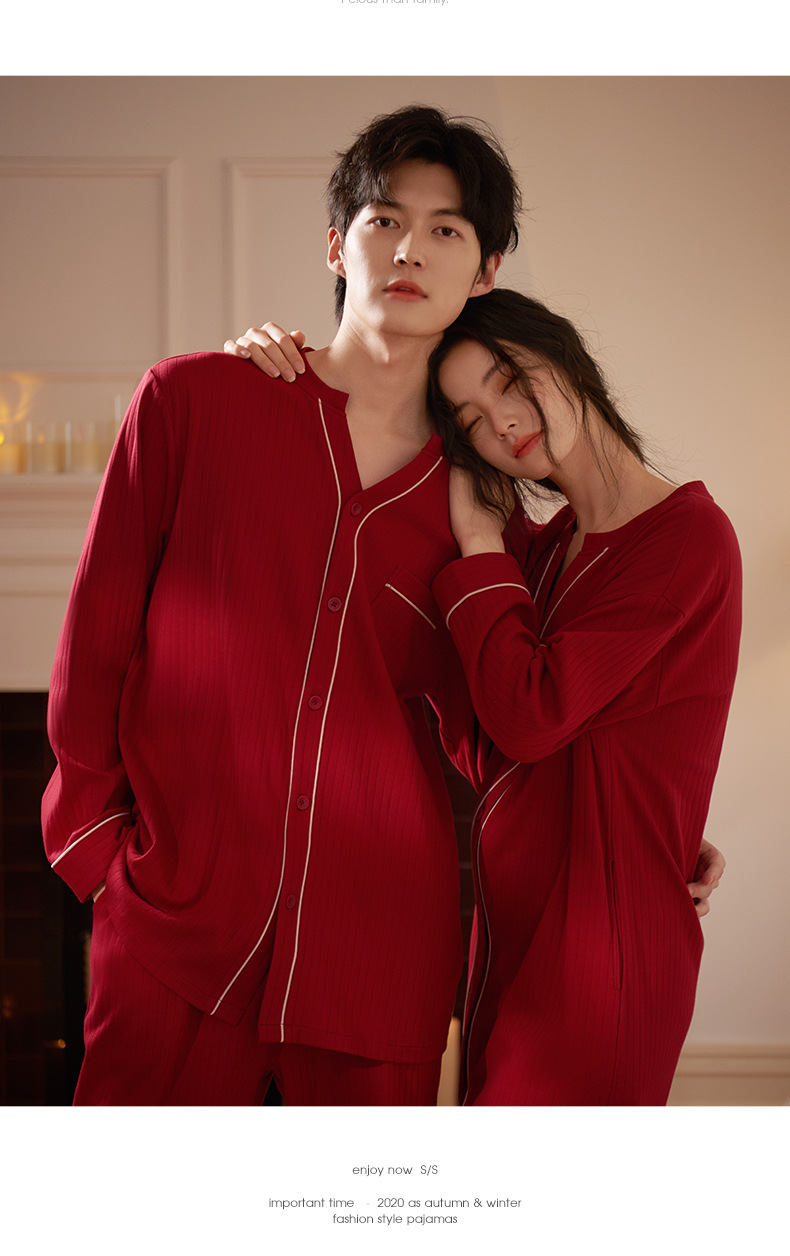 軒の美しいカップルのパジャマの女性の春と秋の長袖の本命年の2つのセットの赤い新婚の結婚する部屋の服の男性