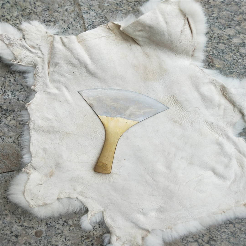 皮草は皮刀の皮刀の三角刀を切って靴の刀を補います。